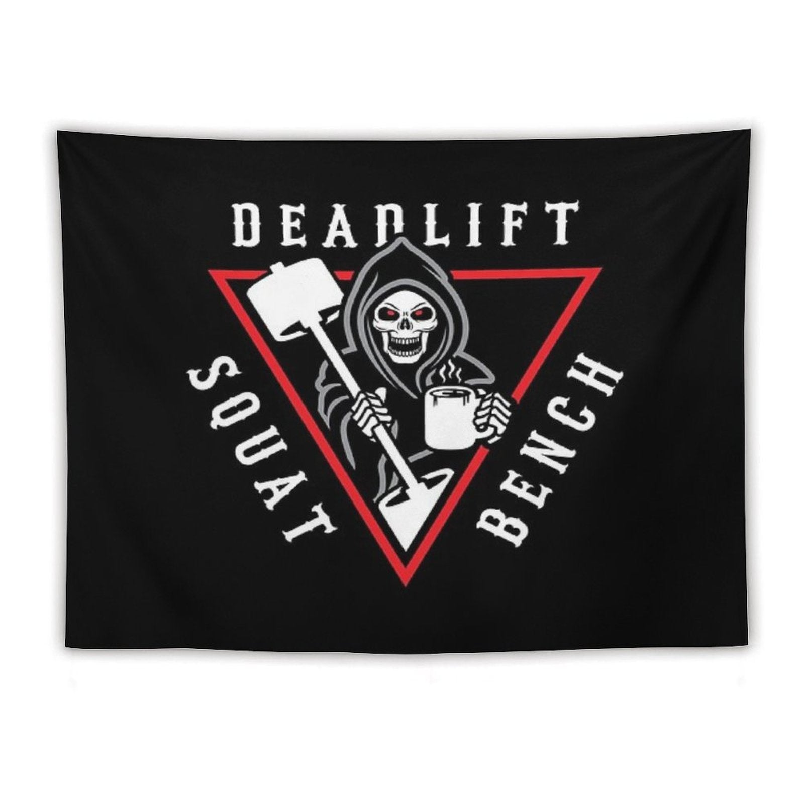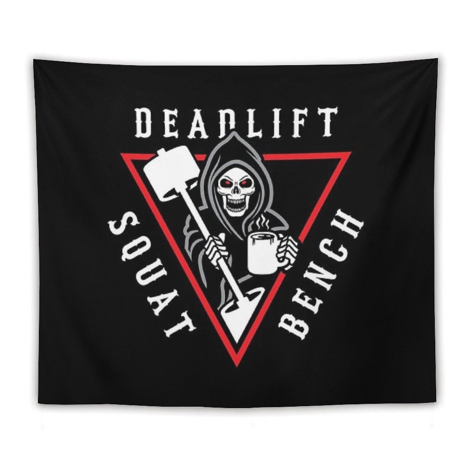 BionZax's Squat Bench Deadlift Grim Reaper Tapestry for Bedroom, College Dorm. Squat Bench Deadlift Grim Reaper Tapestry to decorate your bedroom, college dorm, living room, or kitchen wall, it is the best gift for funny, meme, aesthetic, trendy, simple, fashion, music, abstract, fantasy, modern tapestry for girls, men, boys, teen, women, kids.