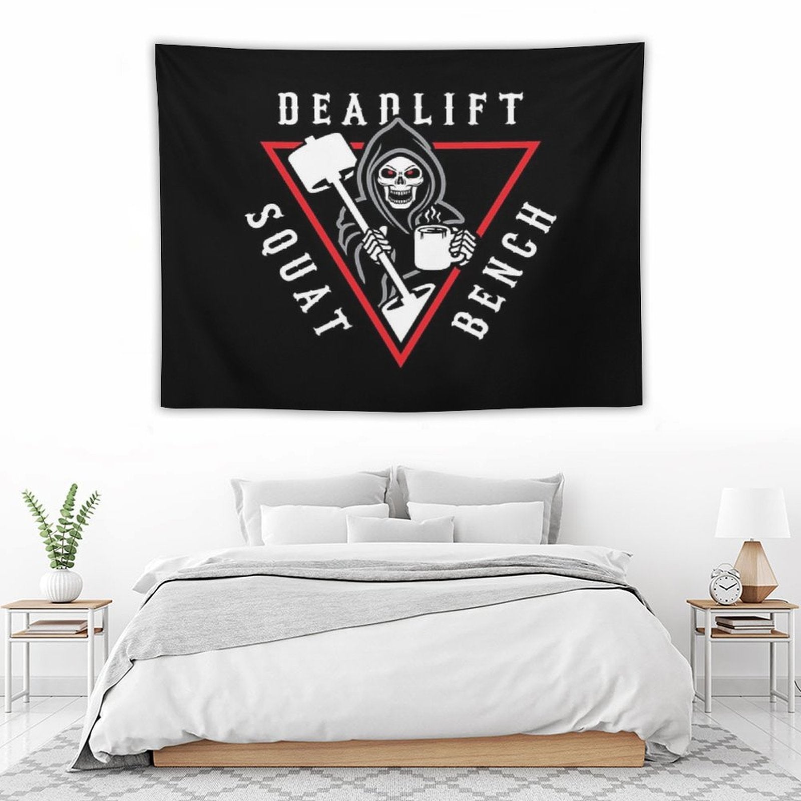 💓【MULTI-FUNCTION】 Used "Squat Bench Deadlift Grim Reaper Tapestry" to decorate your bedroom, college dorm, room, living room, kitchen wall, can be used as tapestry or wall hanging, bedspread, tablecloth, dormitory decoration, beach shawl, tablecloth, etc.