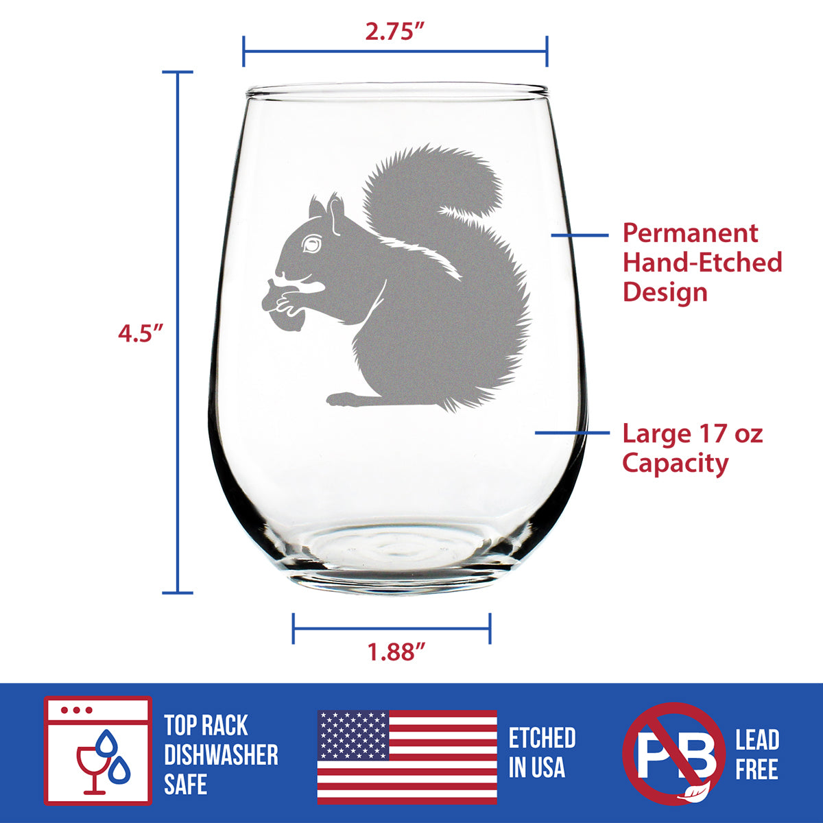 Squirrel Stemless Wine Glass - Squirrel Gifts and Decor with Squirrels - Large 17 Oz Glasses
