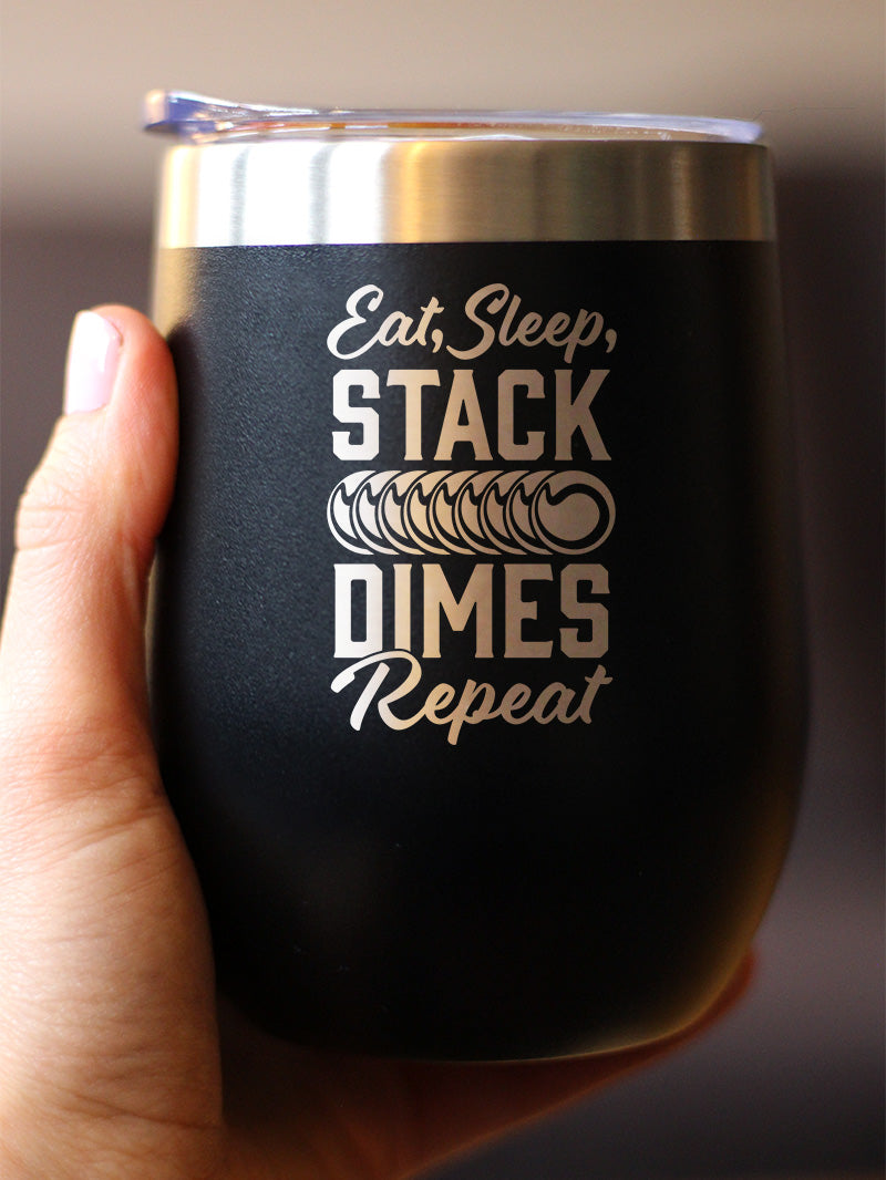 Stack Dimes - Wine Tumbler Cup with Sliding Lid - Stainless Steel Insulated Mug - Welding Gifts for Welders