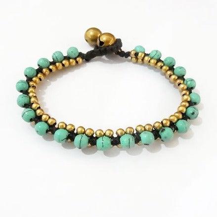 Stackable Bracelet with Brass Beads - Thailand ‐ Turquoise