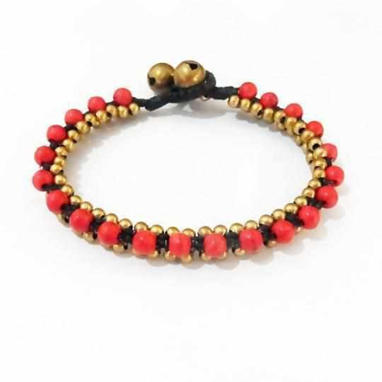 Stackable Bracelet with Brass Beads - Thailand ‐ Red