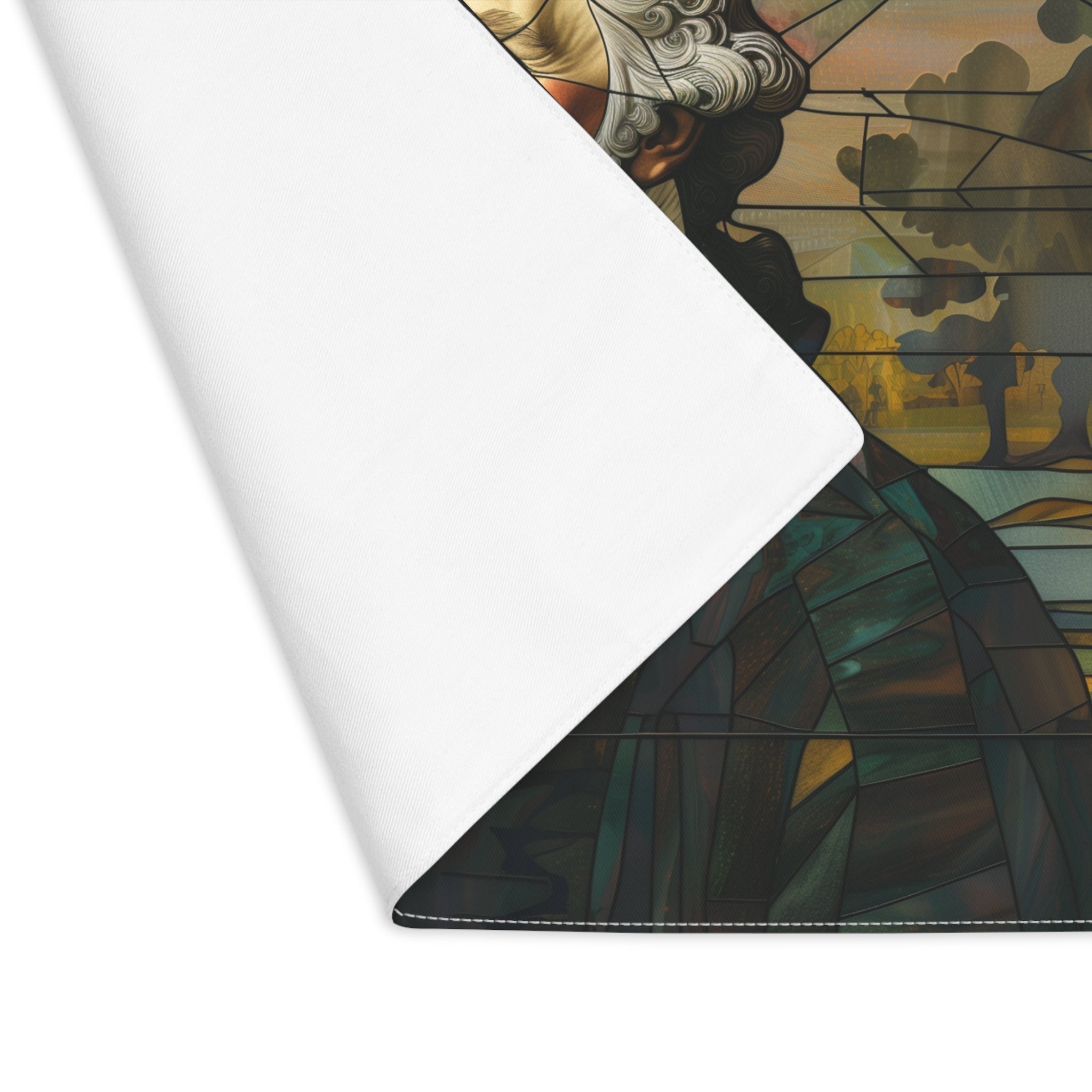 Elevate your dining ambiance with our George Washington Stained Glass Placemats. Crafted to bring a touch of historical elegance to your meals, these placemats feature a distinctive one-sided print of a stained glass design inspired by America's first president. The reverse side boasts a natural cotton finish, allowing you to customize your table setting to suit any occasion. Constructed from 100% durable cotton, these placemats are perfect for both formal dining and everyday use. They are resilient, easy to clean, and designed to resist fading, ensuring long-lasting beauty and functionality. Each placemat measures 18" × 14" and comes with a white seam thread, providing a subtle yet refined accent.