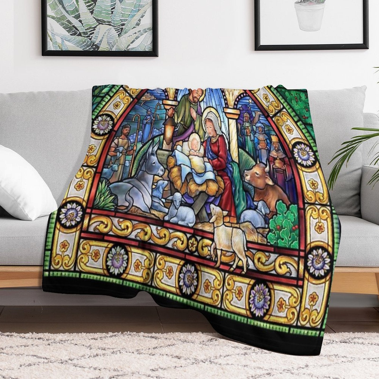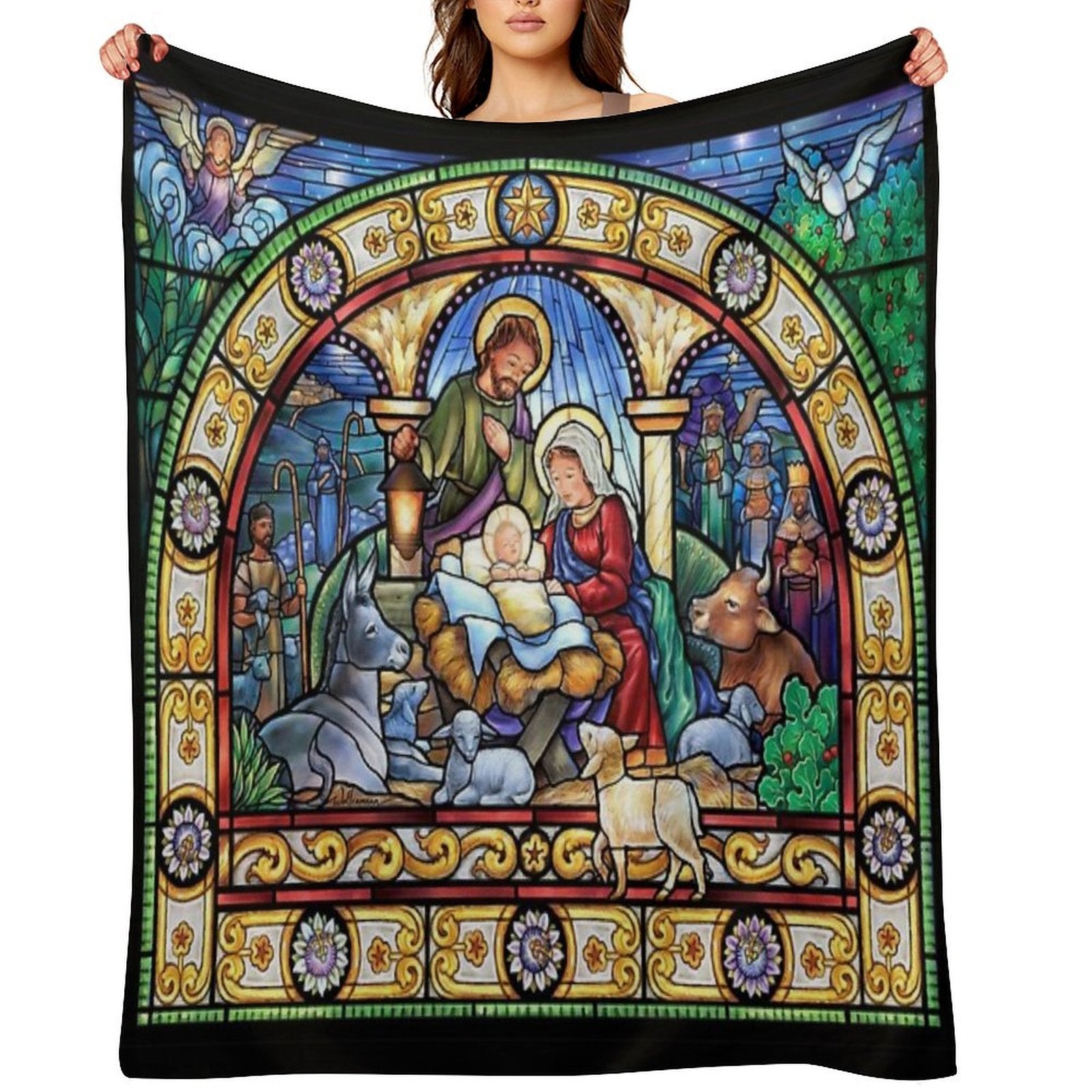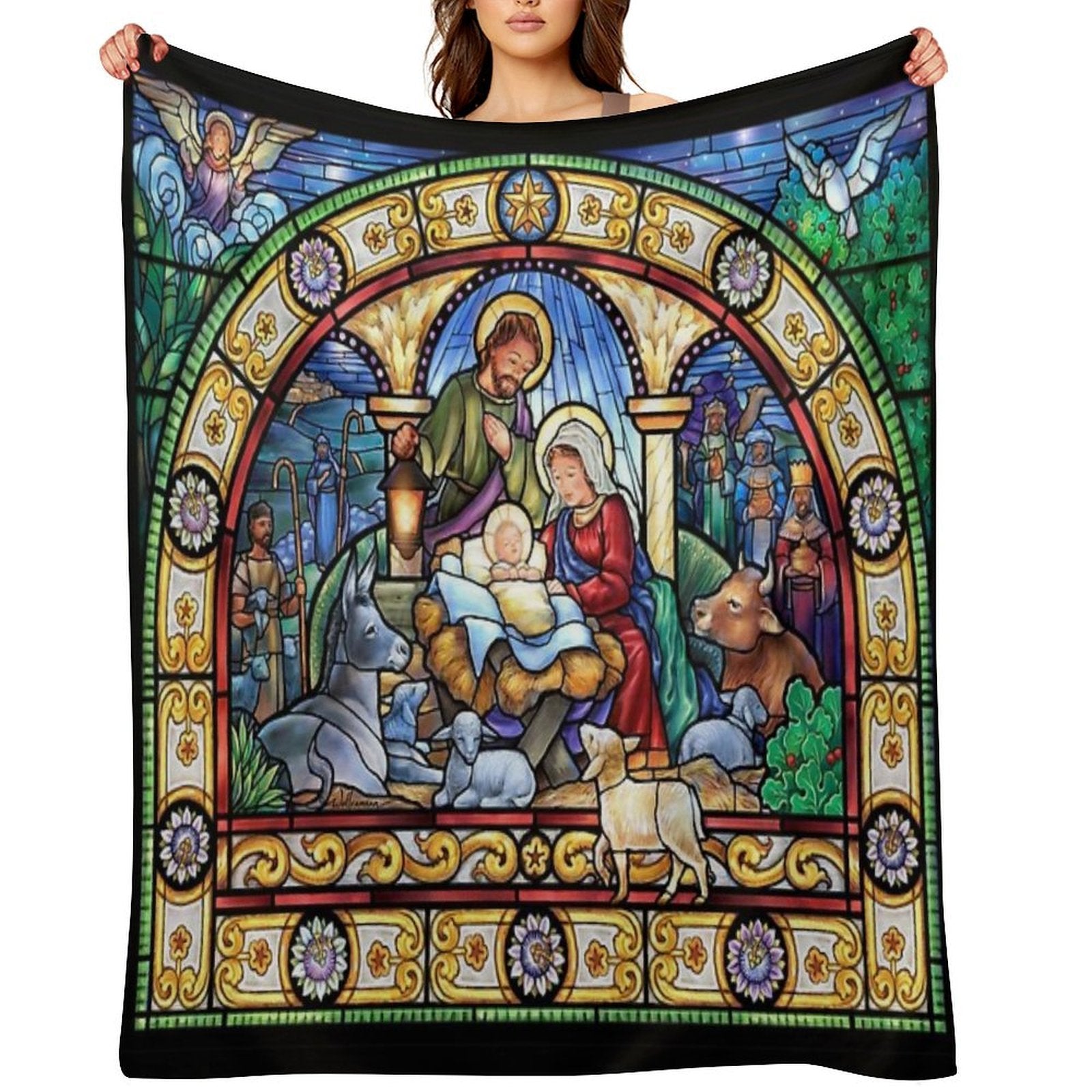 Stained Glass Nativity Throw Blanket ‐ 60"×80"