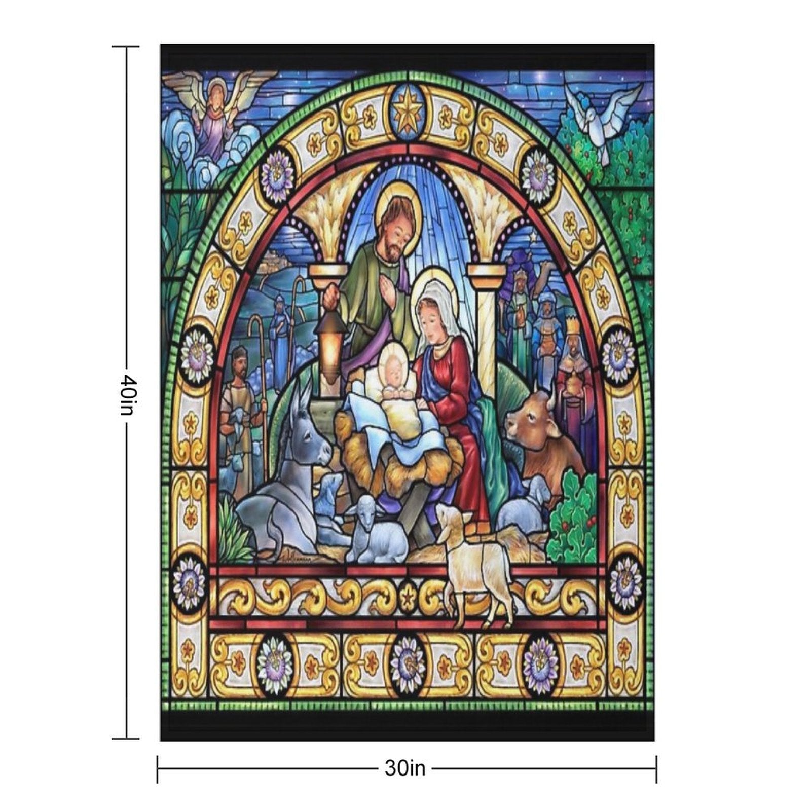 Stained Glass Nativity Throw Blanket ‐ 40"×50"