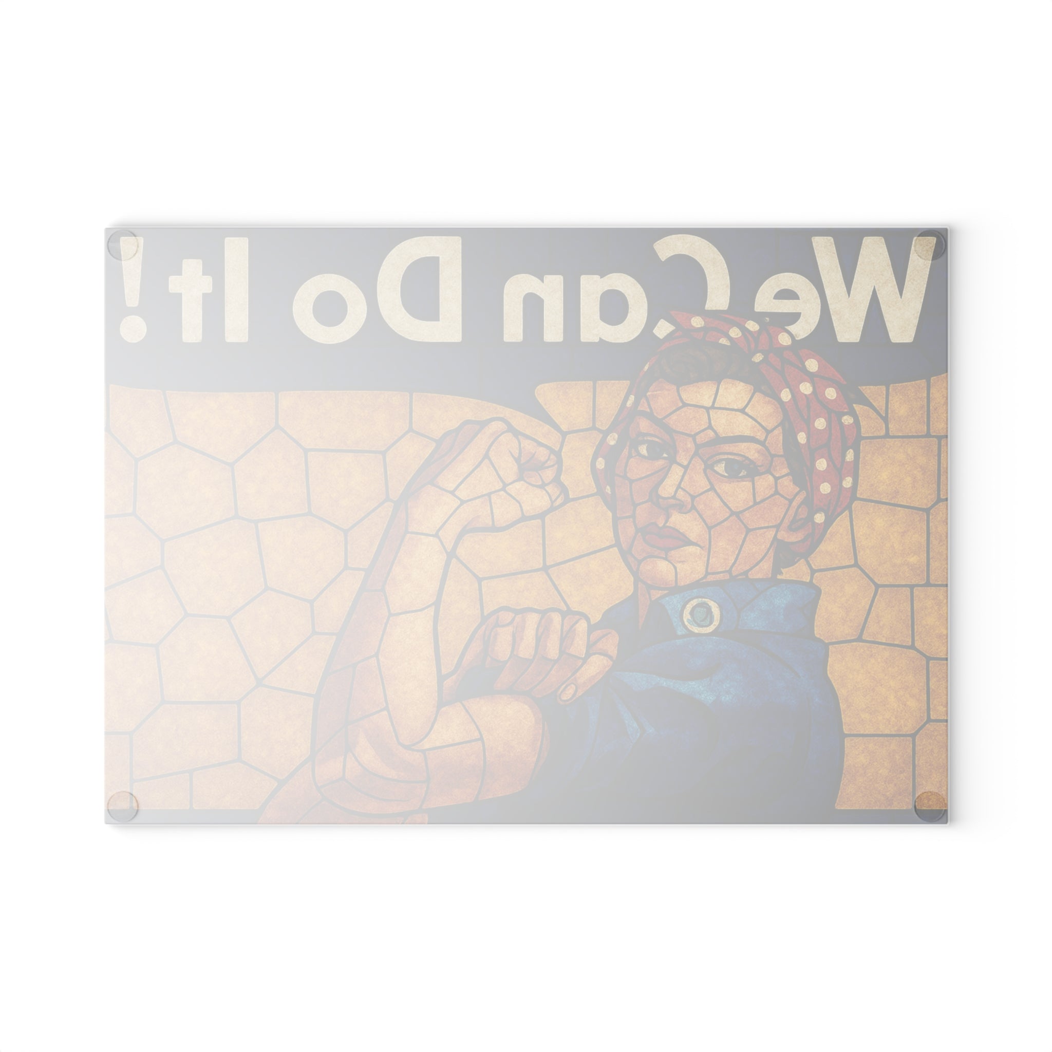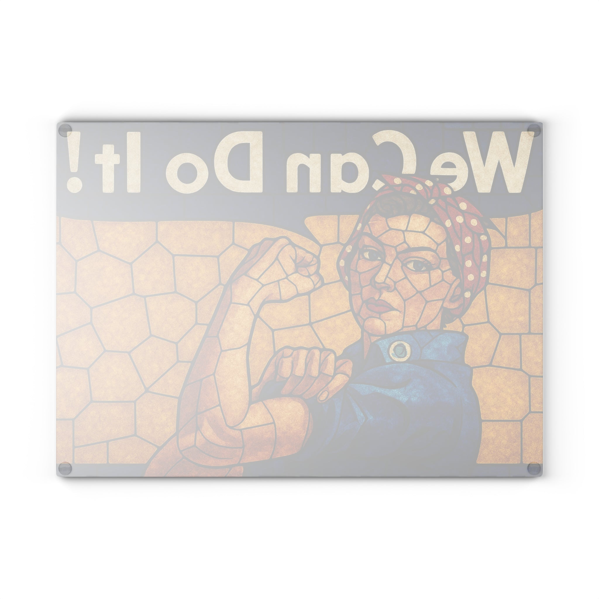Stained Glass Rosie the Riveter Glass Cutting Board ‐ 8" x 11" / Rectangle