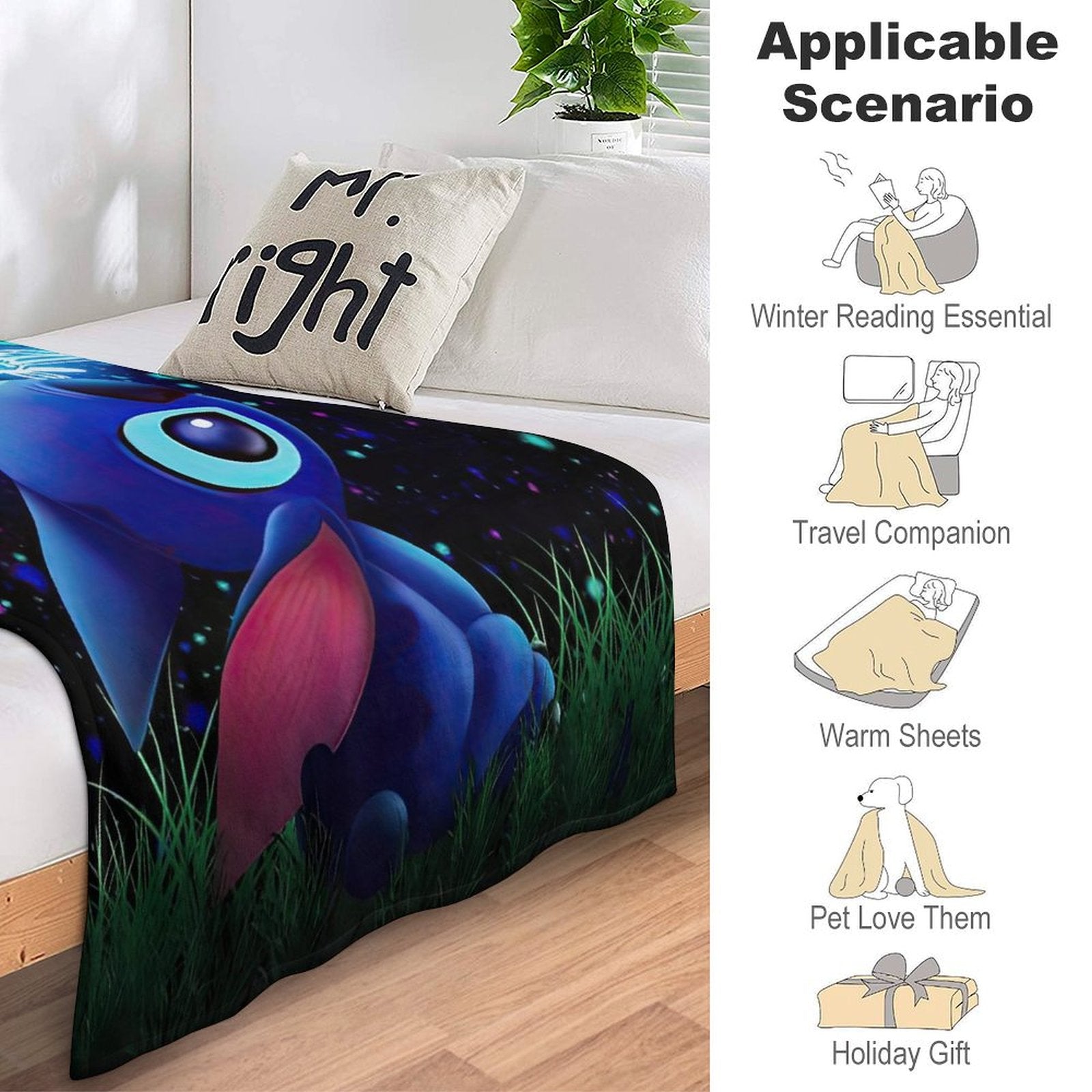 ๐ใBest Giftsใ If you have family or friends who like Stitch Butterfly Starry Sky, this Stitch Butterfly Starry Sky blanket must be your best choice for gifts. This is a great gift for boyfriends, girlfriends, or family and friends on birthdays, Valentine's Day, Mother's Day, Father's Day, Halloween, Thanksgiving, and Christmas.