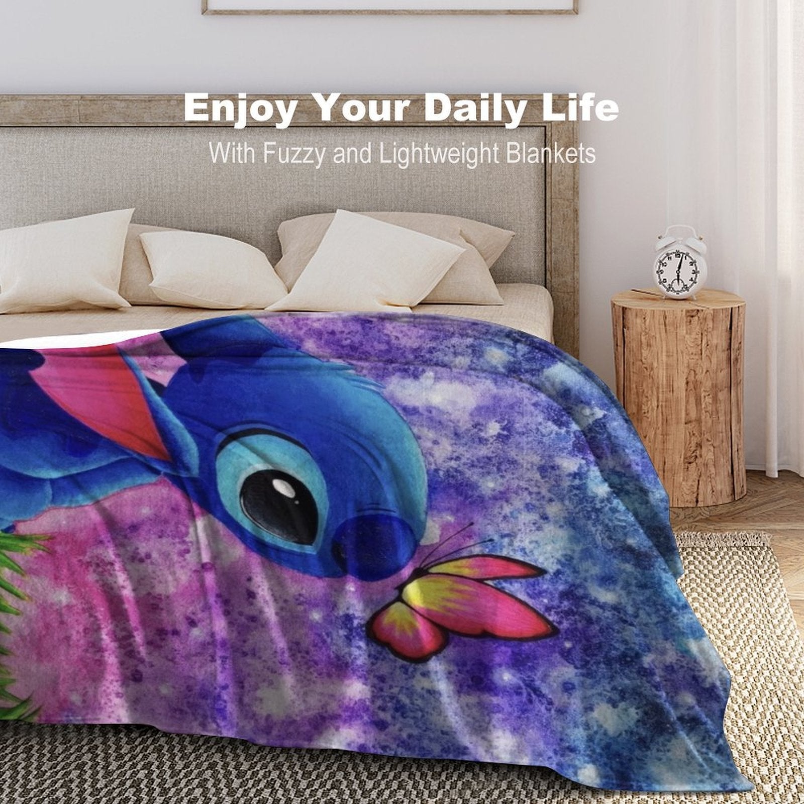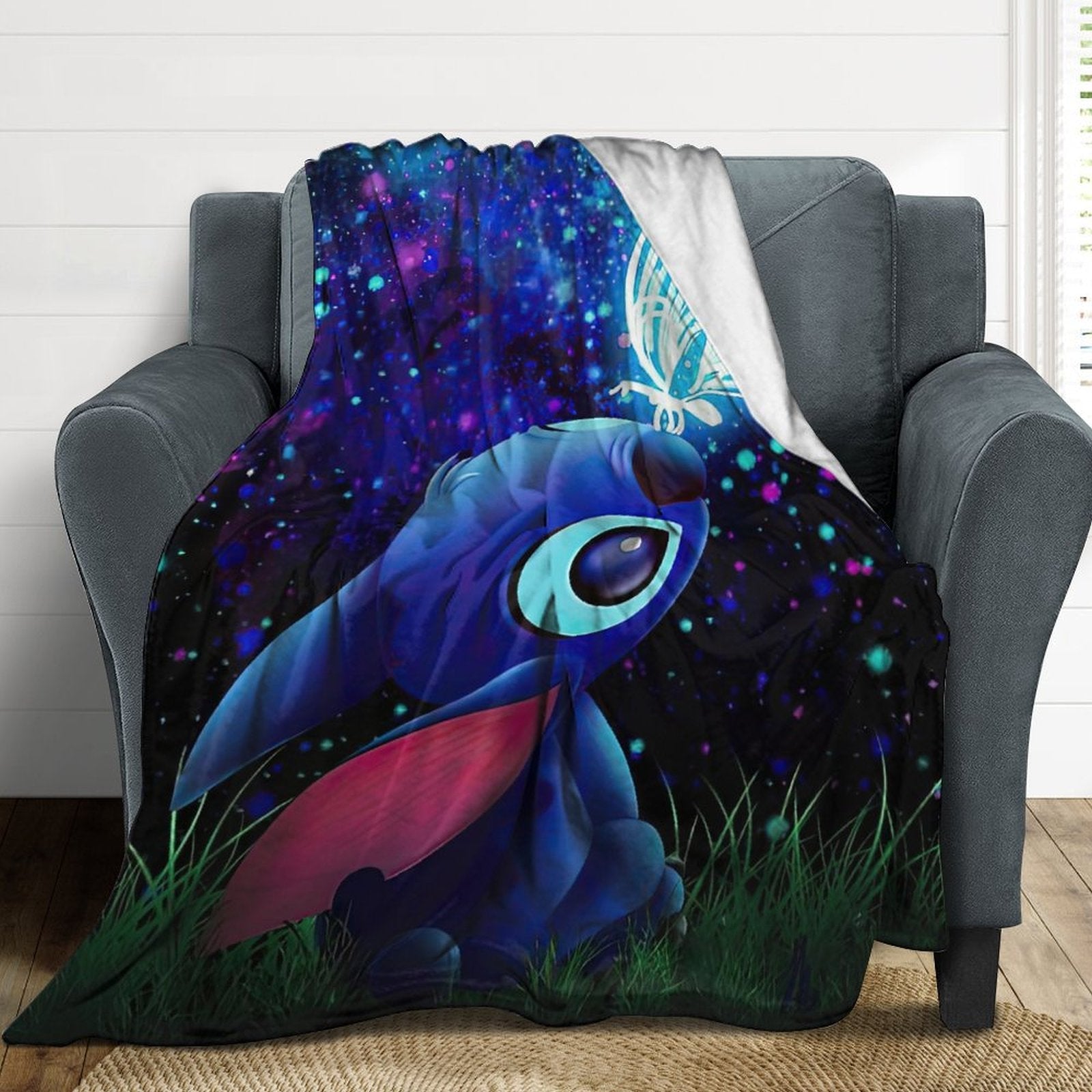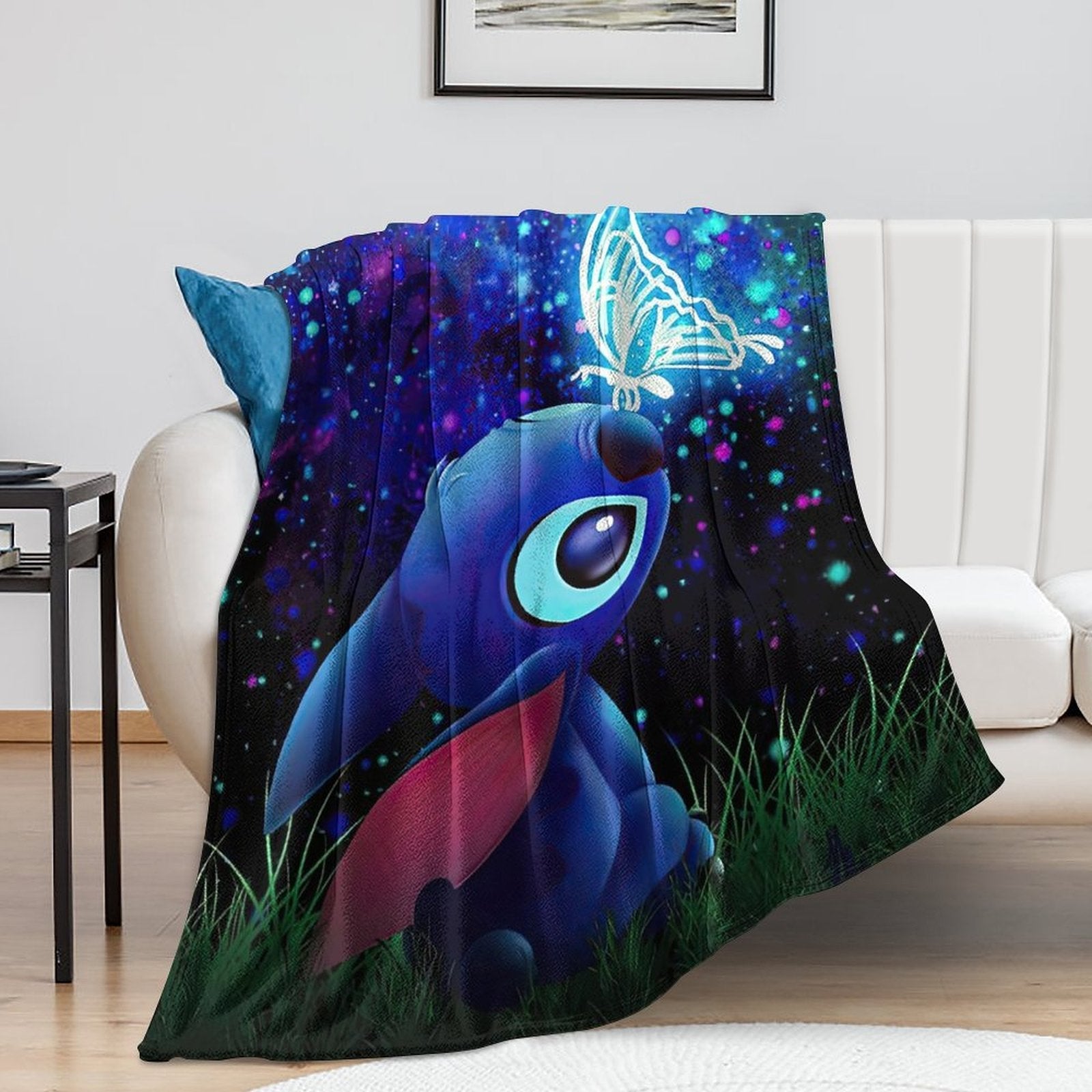 ๐ใStitch Butterfly Starry Sky Decorใ This Stitch Butterfly Starry Sky blanket throw uses a Stitch Butterfly Starry Sky pattern. The unique Stitch Butterfly Starry Sky design adds decoration to your room, allowing blankets to easily blend into your home decoration style, making your home warm and stylish.