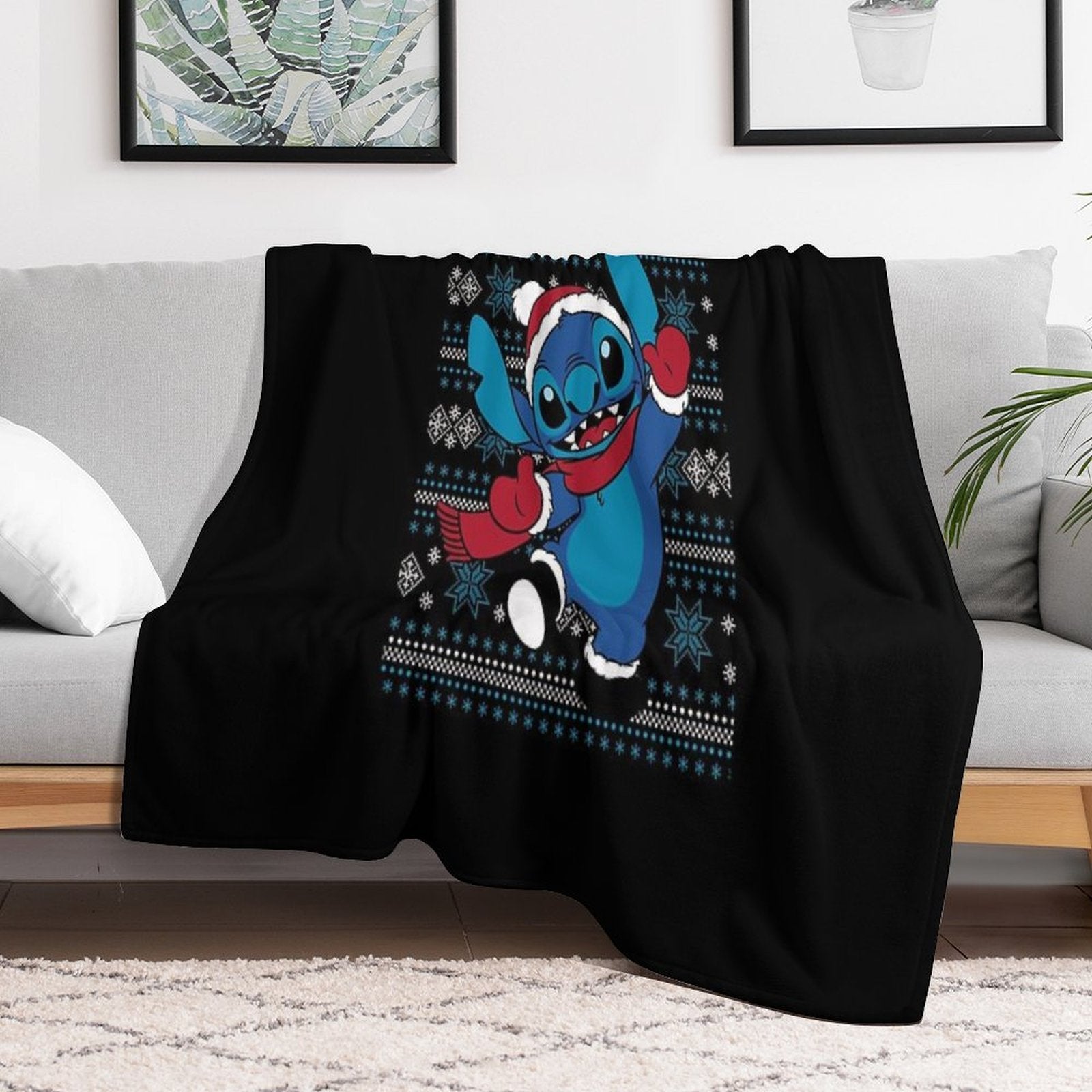 Stitch Happy Holiday Gift For Fans, For Men And Women, Gift Halloween, Thanksgiving, Christmas Day Throw Blanket