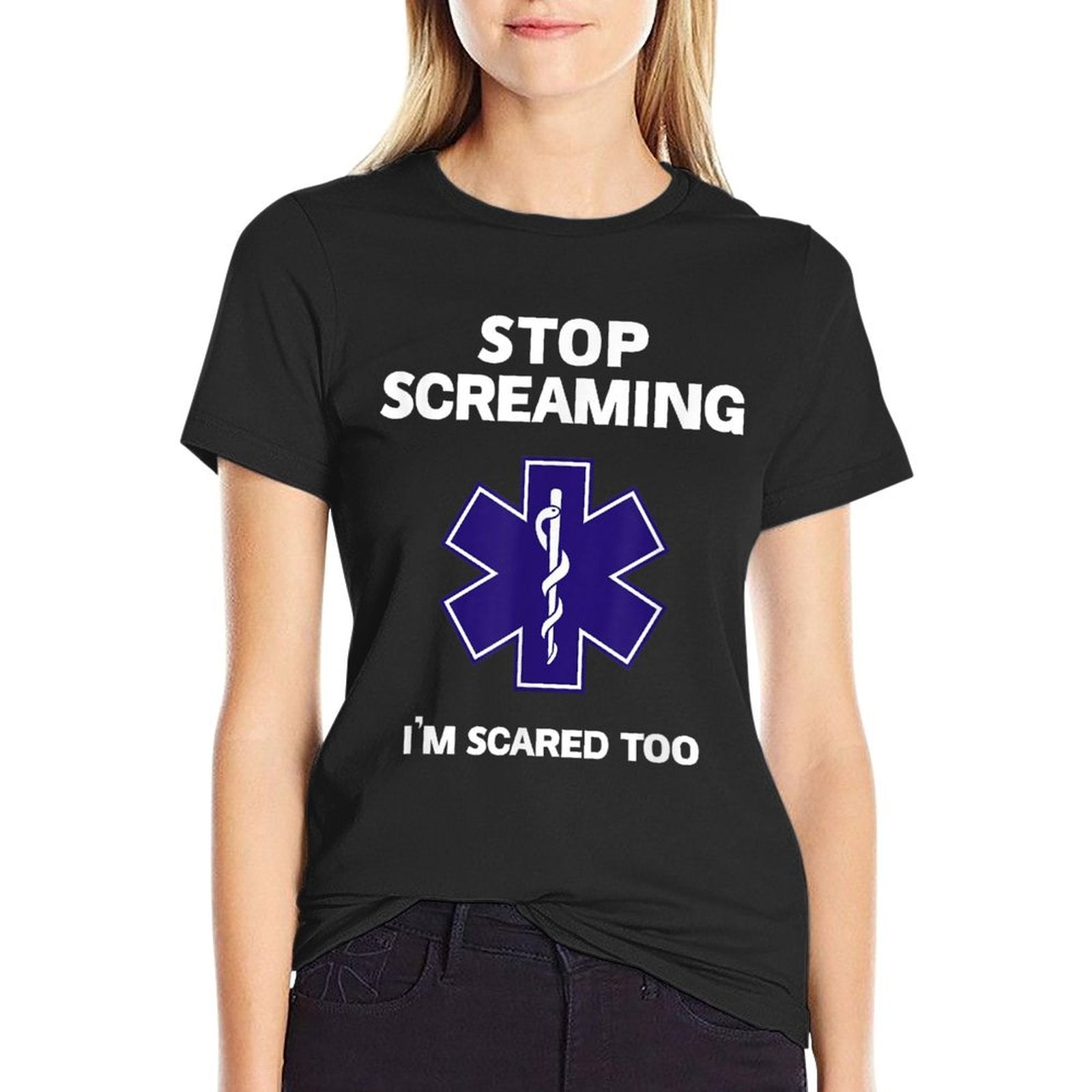 - Care Reminder: Skip soaking and bleach to extend your STOP SCREAMING IM SCARED TOO Funny EMT EMS Paramedic tee’s lifespan.