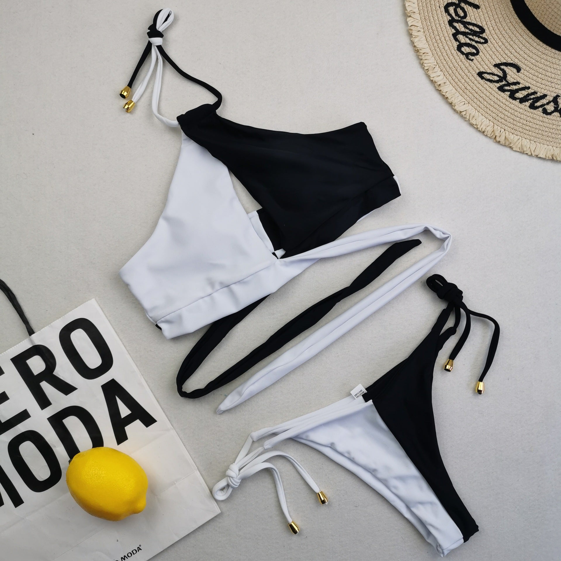 Strap Sexy Bikini Swimwear | ZAKAPOP ‐ Black-White / M