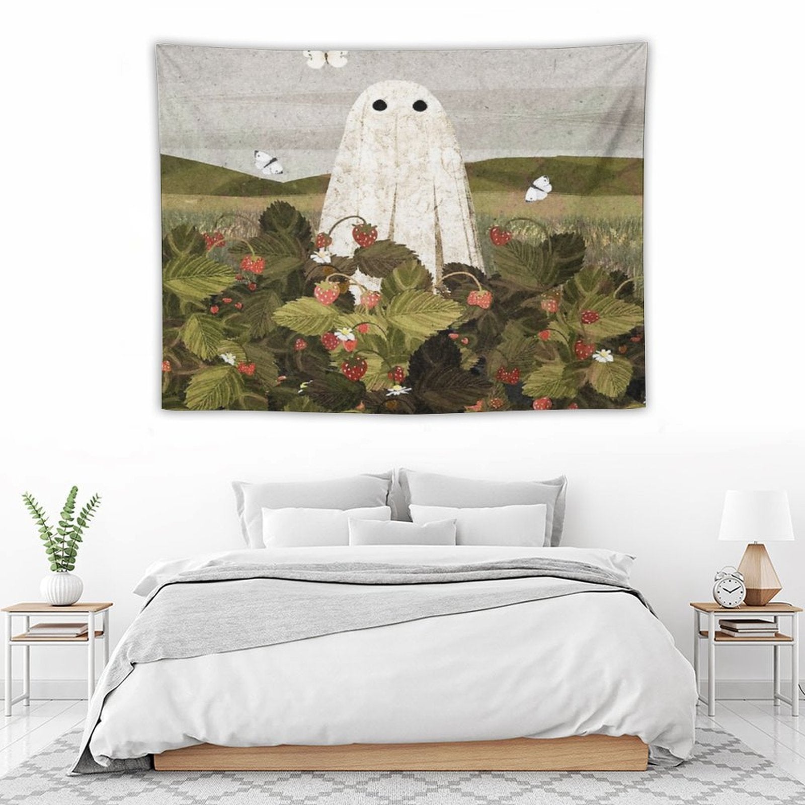 BionZax's Strawberry Fields Tapestry for Bedroom, College Dorm. Strawberry Fields Tapestry to decorate your bedroom, college dorm, living room, or kitchen wall, it is the best gift for funny, meme, aesthetic, trendy, simple, fashion, music, abstract, fantasy, modern tapestry for girls, men, boys, teen, women, kids.