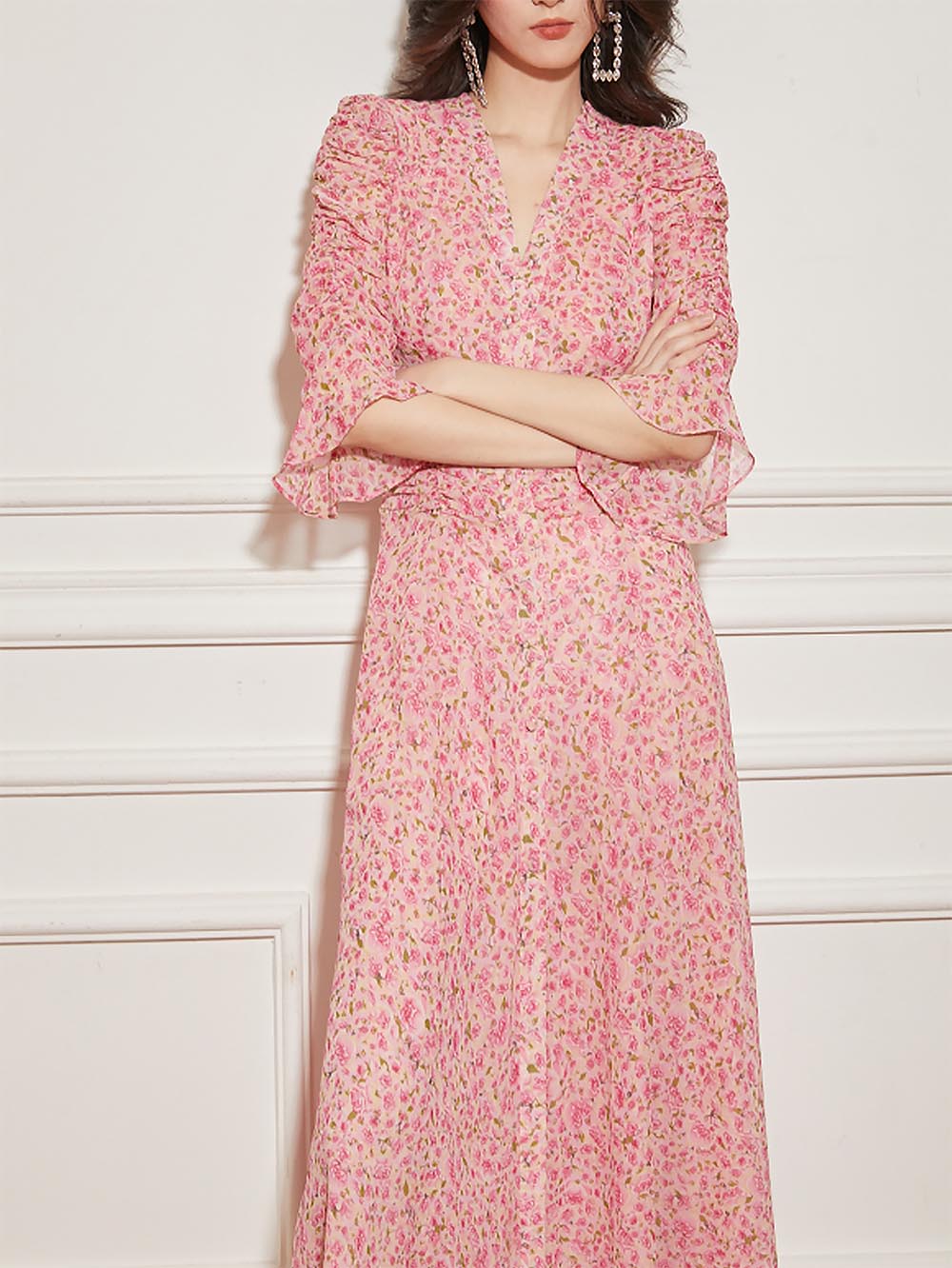 A summer vacation-style dress with a V-shaped neckline and waistband design at the waist. It both slims the figure and accentuates the chest. The A-line hem raises the waistline, creating a visually taller and longer-legged look.