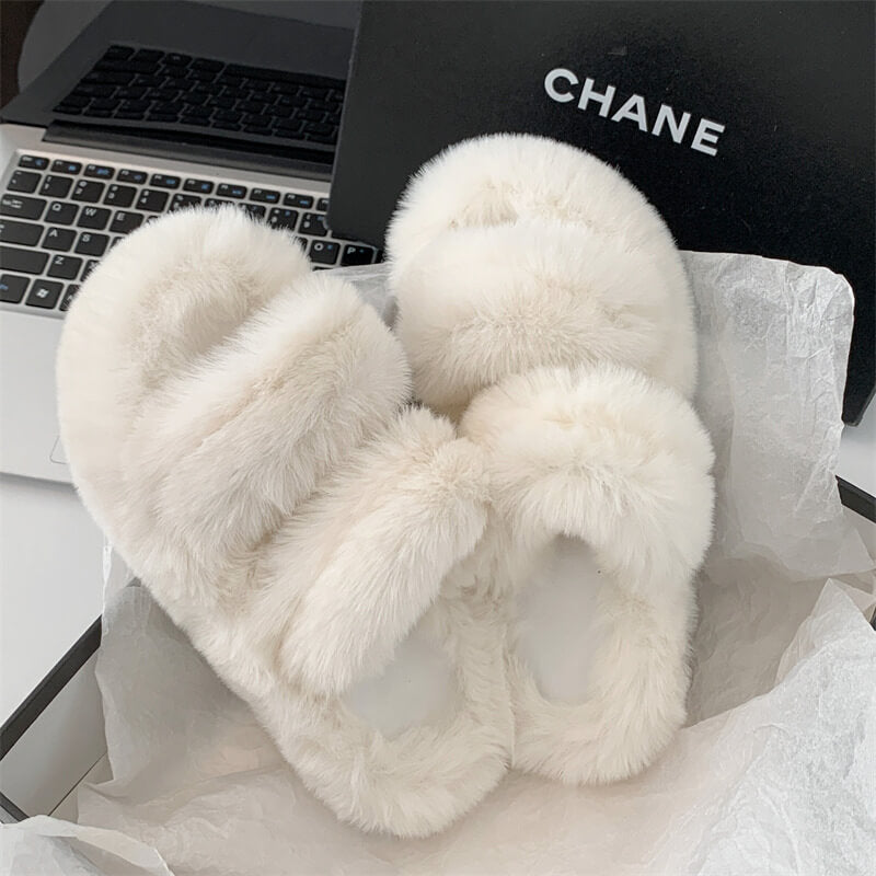 Stylish Thick-Sole Outdoor Wear Plush Winter Slippers | ZAKAPOP ‐ Cross B / 8.5-9.5 Women