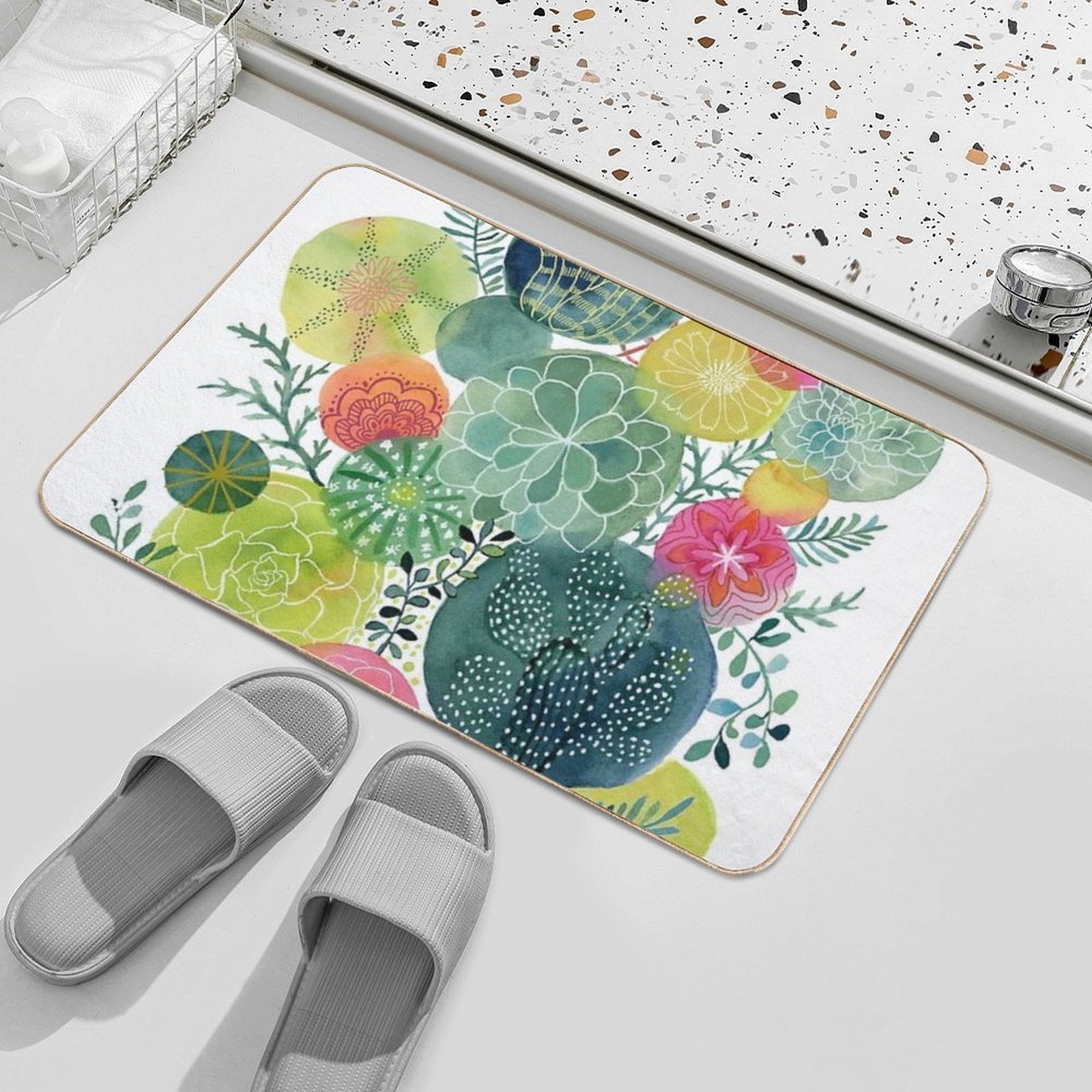 - Use as a vanity rug, guest suite accent, or mudroom defender – the Succulent Circles Mat adapts to any space.