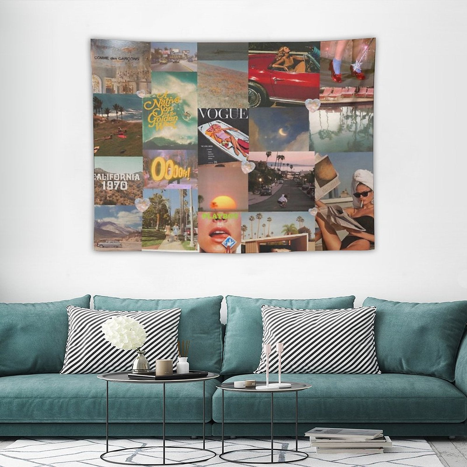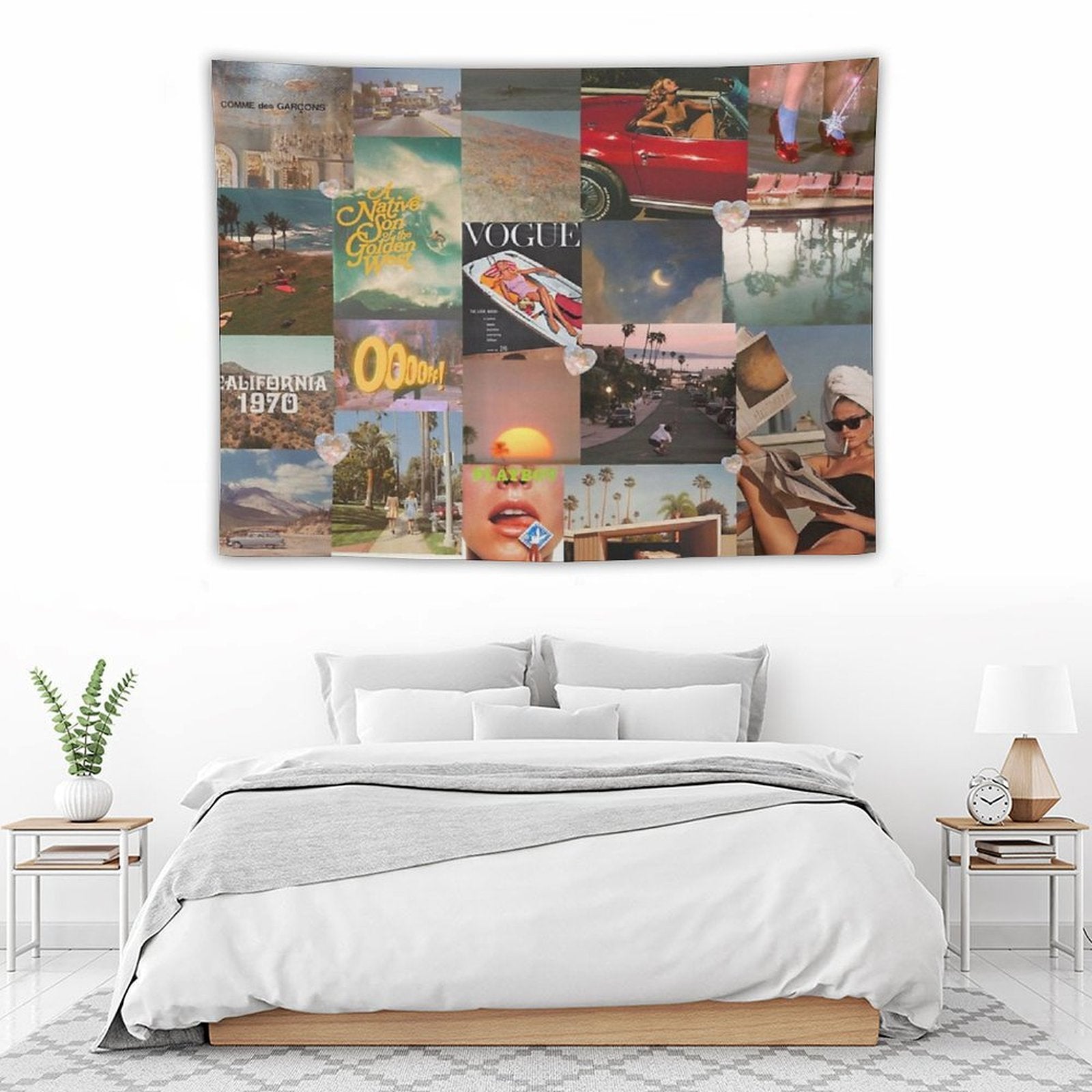 BionZax's Summer Dream Collage Tapestry for Bedroom, College Dorm. Summer Dream Collage Tapestry to decorate your bedroom, college dorm, living room, or kitchen wall, it is the best gift for funny, meme, aesthetic, trendy, simple, fashion, music, abstract, fantasy, modern tapestry for girls, men, boys, teen, women, kids.