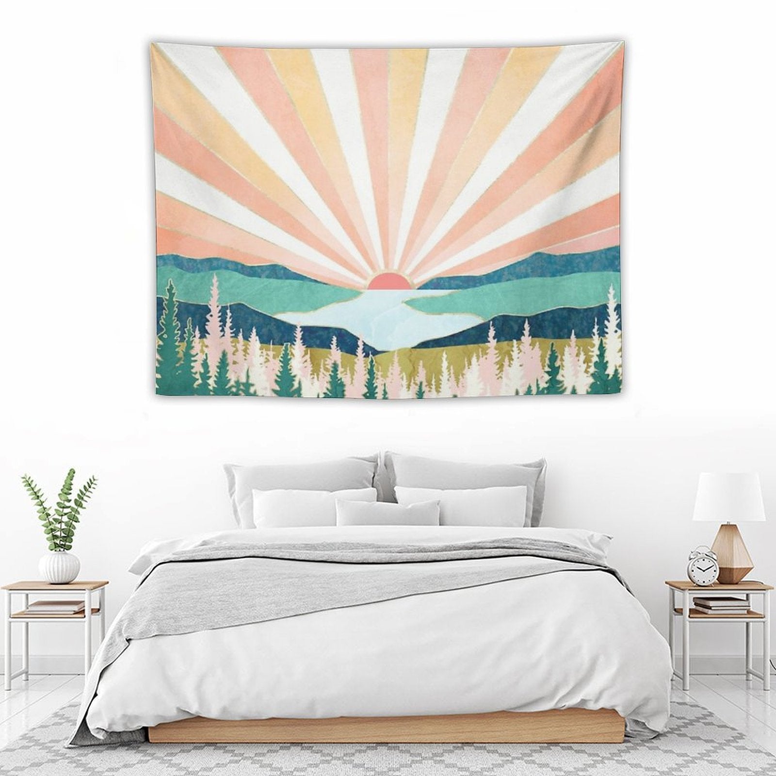 💕【ACCESSORY STRUCTURE】 "Summer Sunset Tapestry" (lock edge), with 2 barb clips and 3 no trace nail hooks, the two ends of the wall blanket can be fixed on the wall, convenient installation, will not destroy the wall.