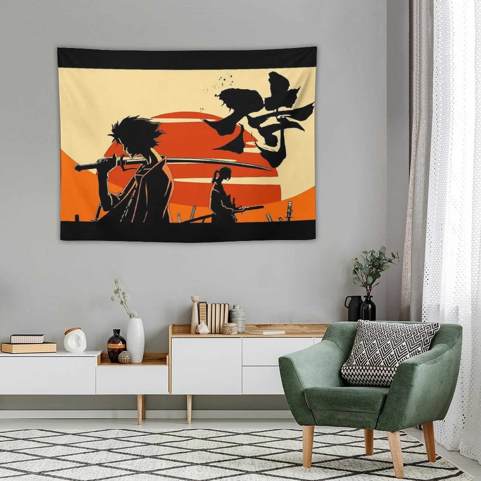 💓【MULTI-FUNCTION】 Used "Sunset Samurai Tapestry" to decorate your bedroom, college dorm, room, living room, kitchen wall, can be used as tapestry or wall hanging, bedspread, tablecloth, dormitory decoration, beach shawl, tablecloth, etc.