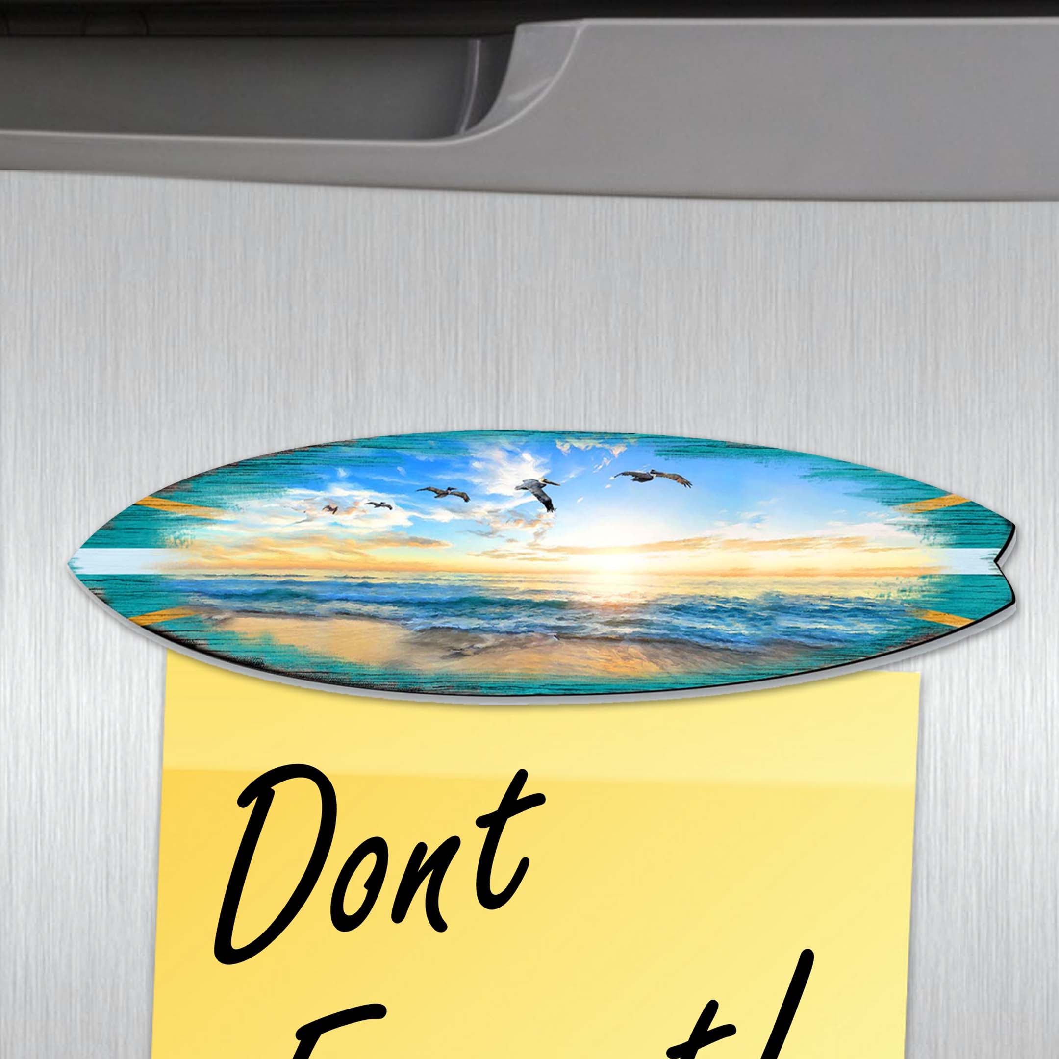 Enhance your coastal Decor with our Surfboards Decorative eco wooden Magnets Set of 6 by G. Debrekht. These charming magnets are expertly crafted and feature a stylish surfboard design. Made with high-quality materials, they are both decorative and functional, adding a touch of whimsy to any magnetic surface.