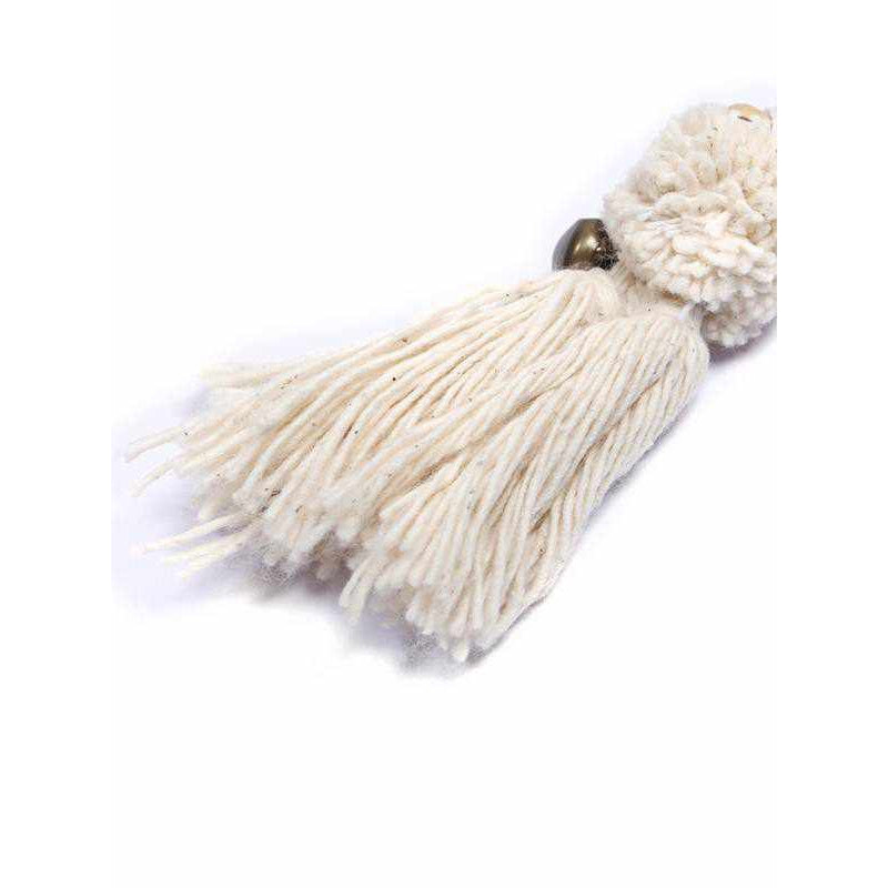 A beautiful and elevated key ring / zipper pull is here. A unique bag accessory, sustainably made by Thai Artisans that features sustainably sourced materials adorned with natural pom poms. Use it as a unique keychain-never have trouble finding your keys again!