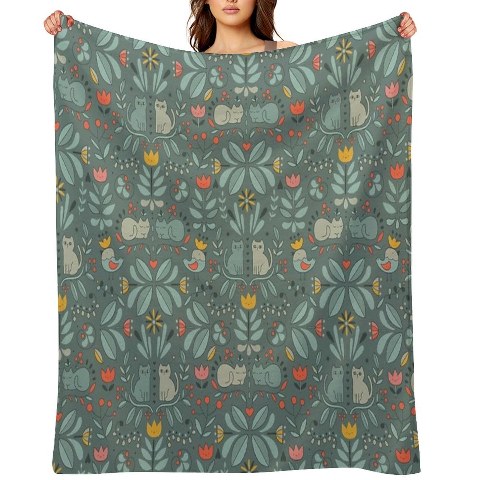 Swedish Folk Cats Throw Blanket ‐ Swedish Folk Cats / 60"×80"