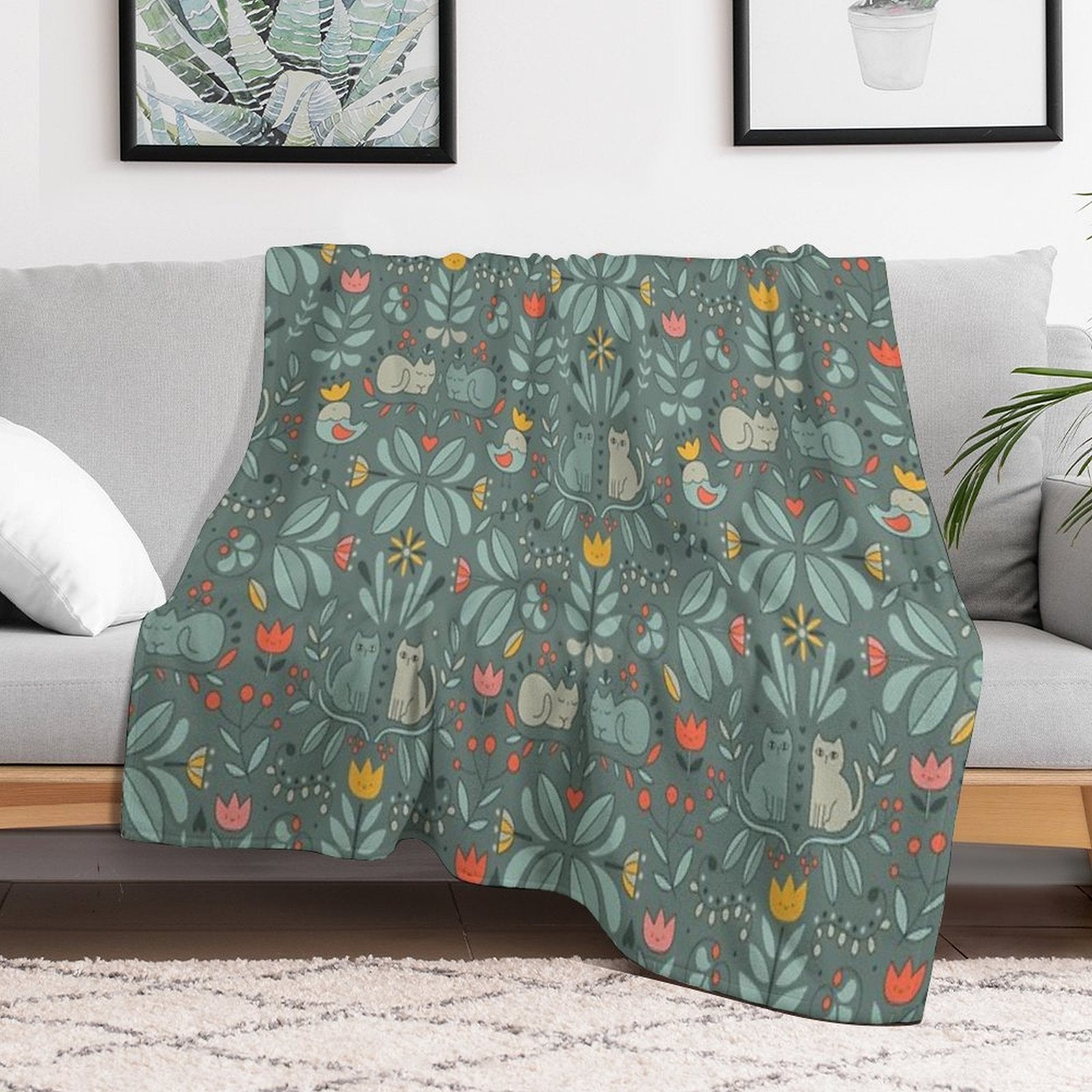 Swedish Folk Cats Throw Blanket ‐ Swedish Folk Cats / 40"×50"