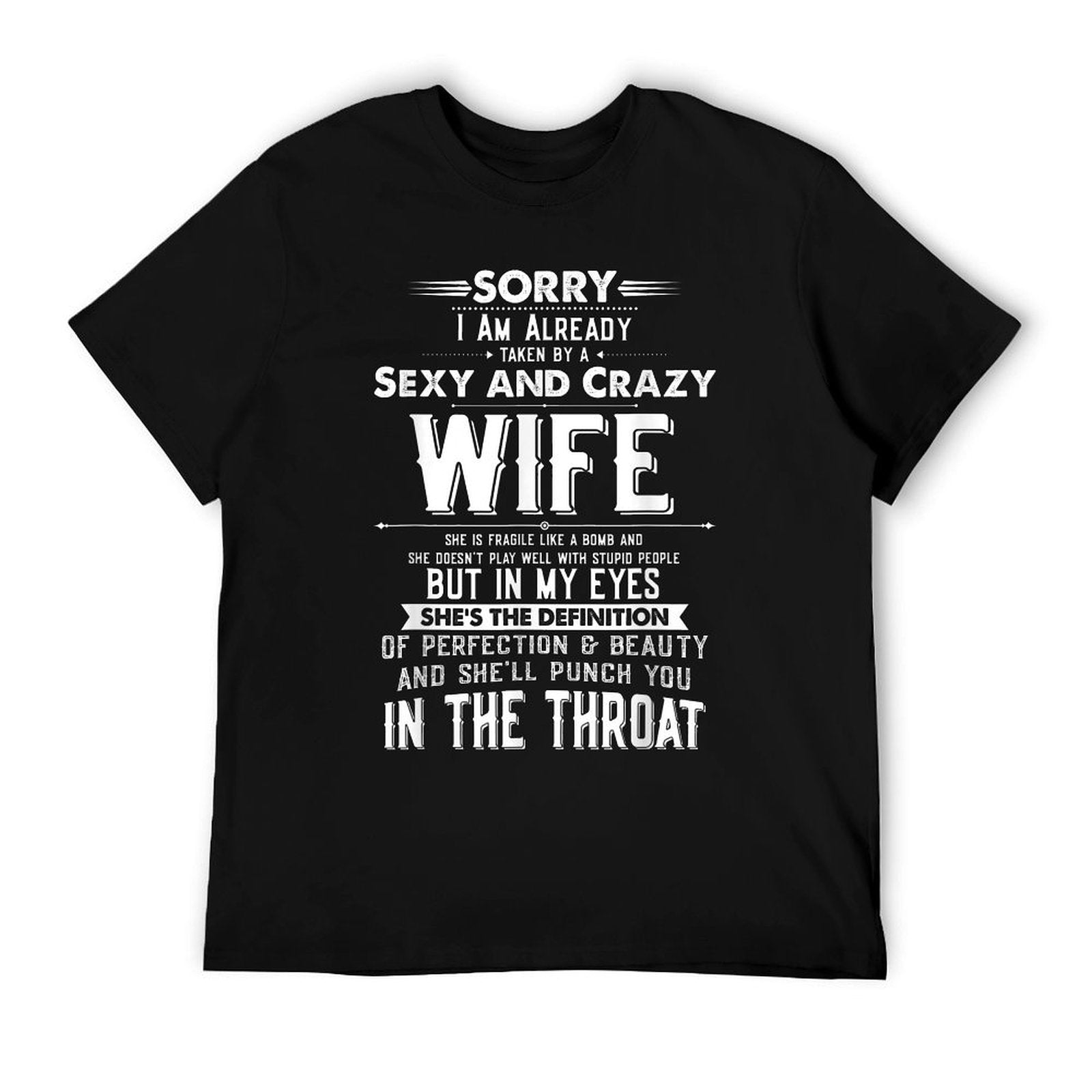 - Avoid bleach to preserve the Taken by A Sexy And Crazy Wife Funny Husband T-shirt’s bold graphics and cotton integrity.