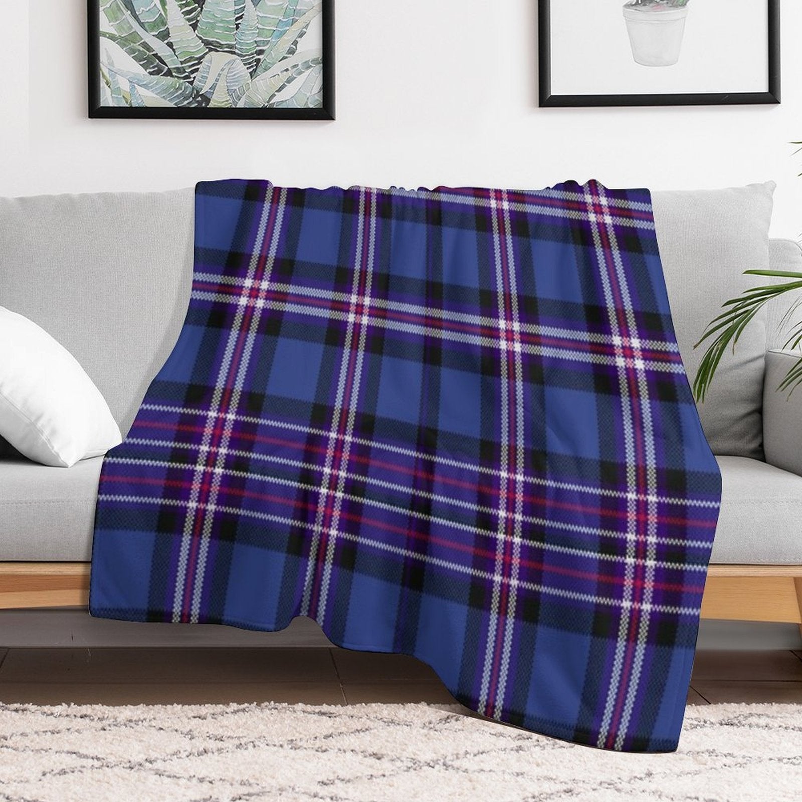 Tartan of Rangers Scotland Blue Background with Red White And Blue Lines And Black Throw Blanket