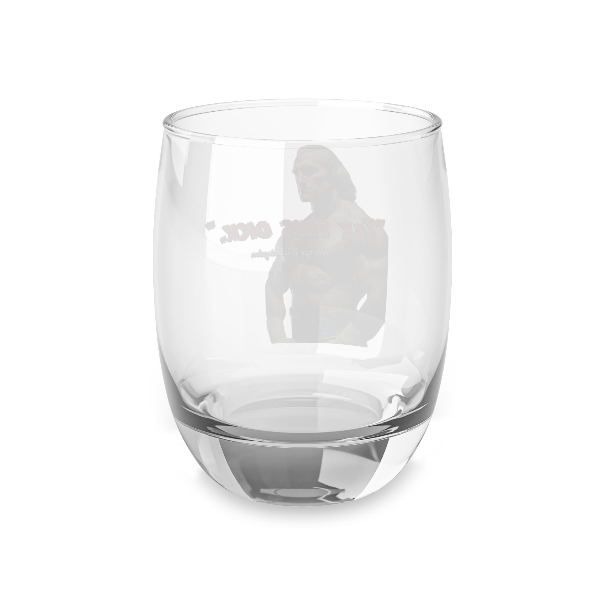 Introducing the "Revolutionary Rumble Whiskey Glass" - a hilarious homage to history that will knock your socks off! Prepare to witness an epic clash between two worlds: the father of our nation, George Washington, and the thrilling realm of professional wrestling! Behold as Washington steps into the squared circle, flexing his muscles and declaring, "Tax this, dick!"