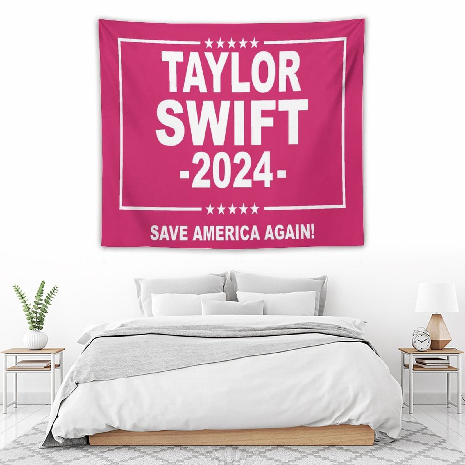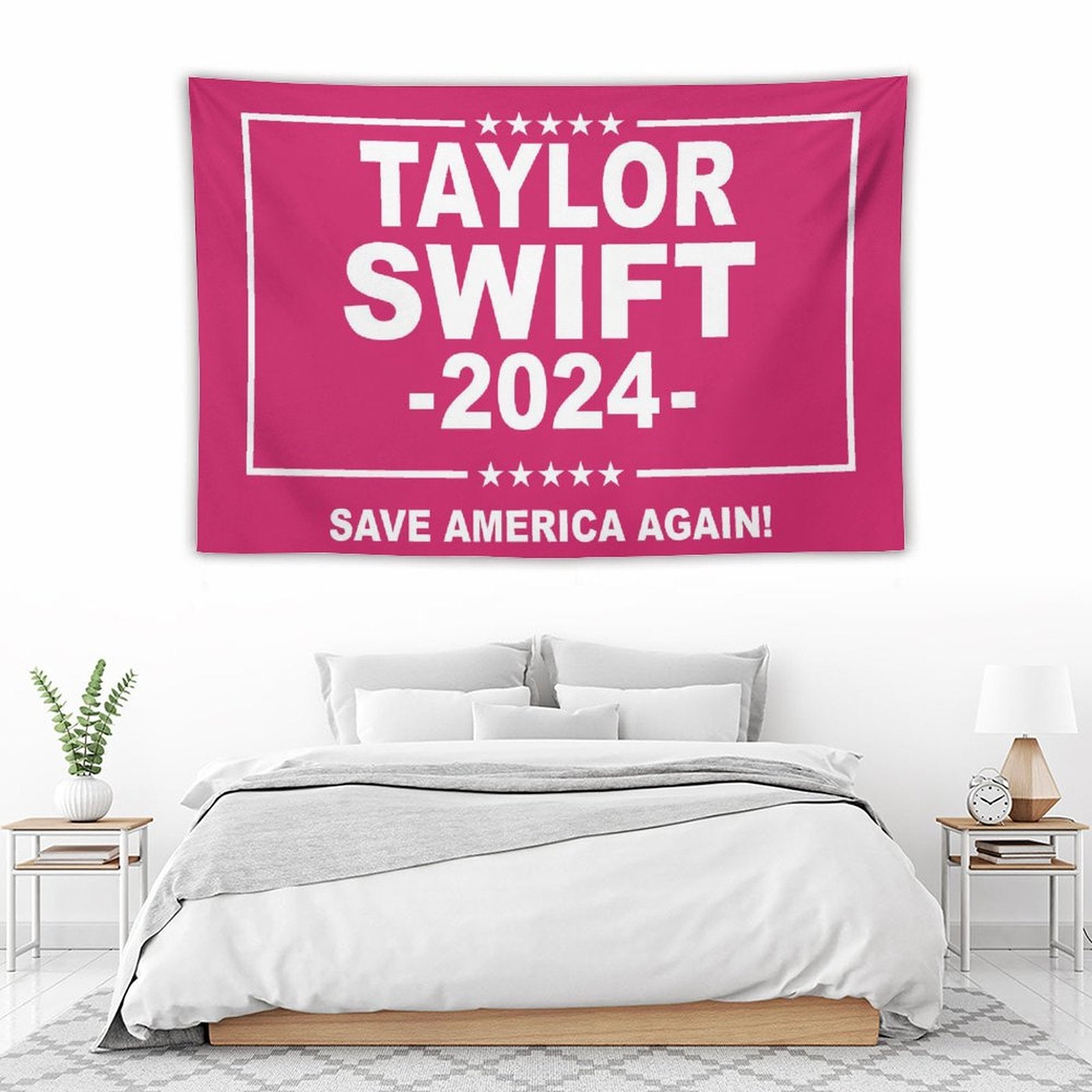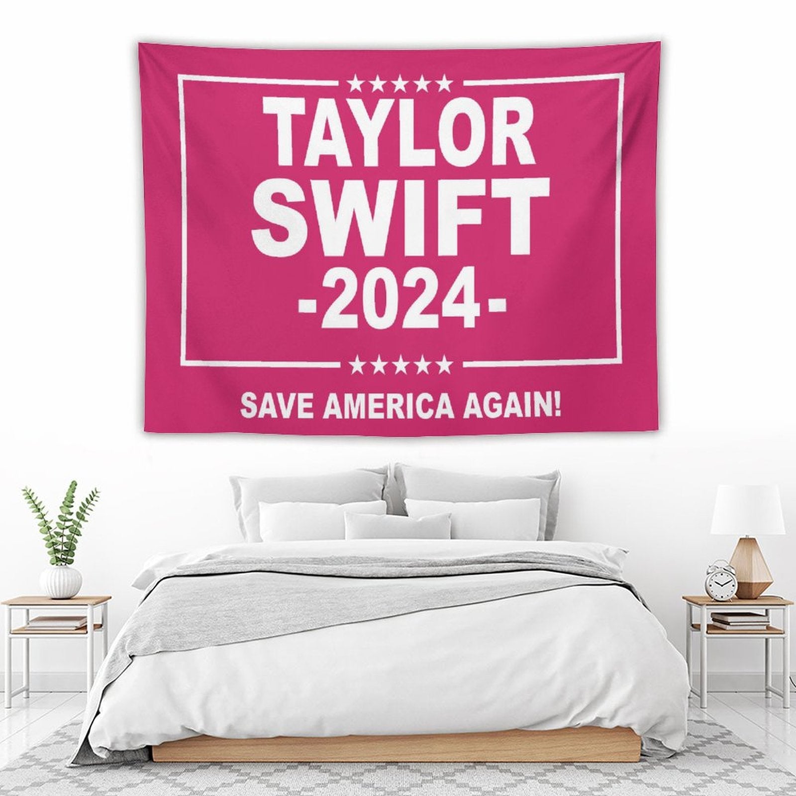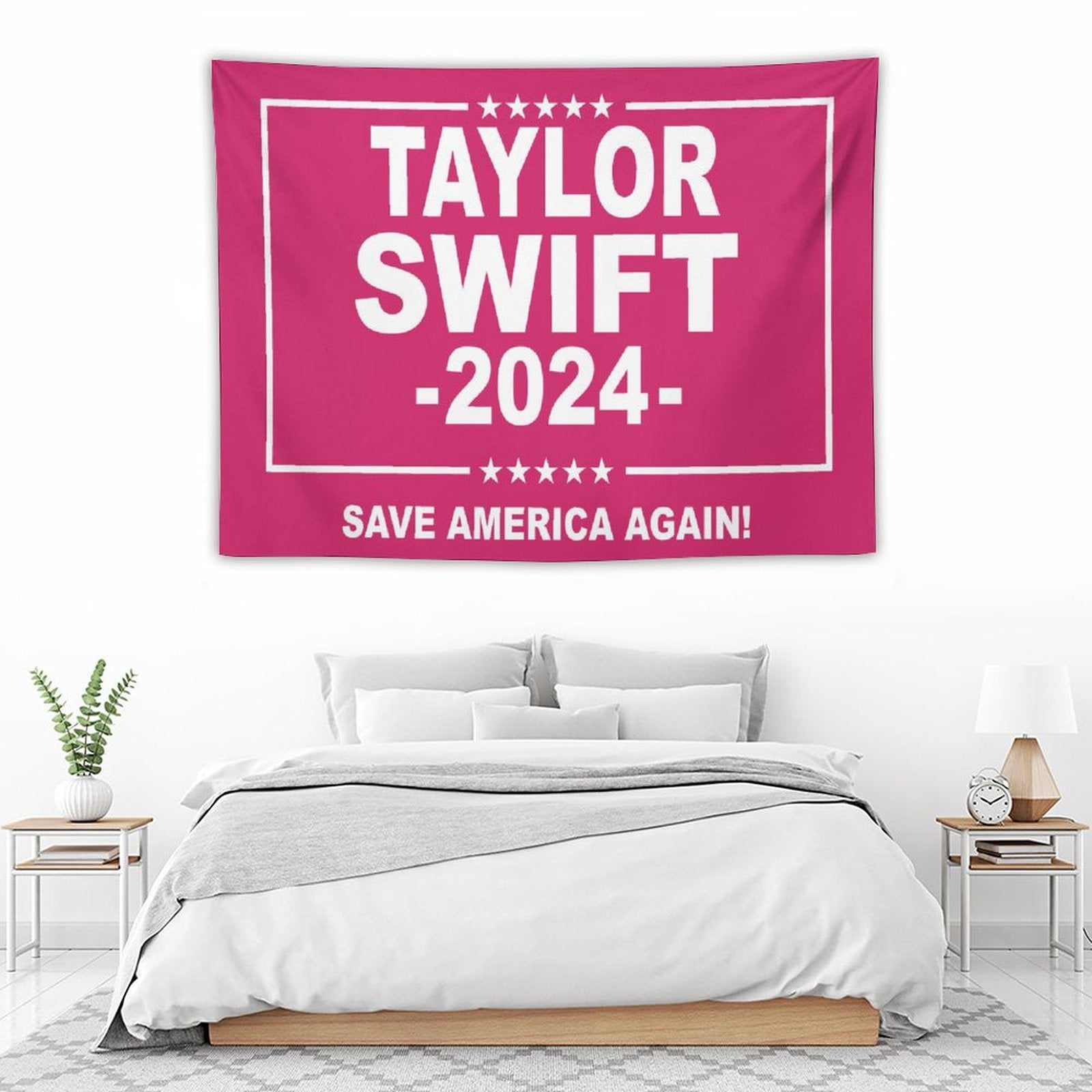 💓【MULTI-FUNCTION】 Used "Taylor Swift 2024 Save America Again Tapestry" to decorate your bedroom, college dorm, room, living room, kitchen wall, can be used as tapestry or wall hanging, bedspread, tablecloth, dormitory decoration, beach shawl, tablecloth, etc.