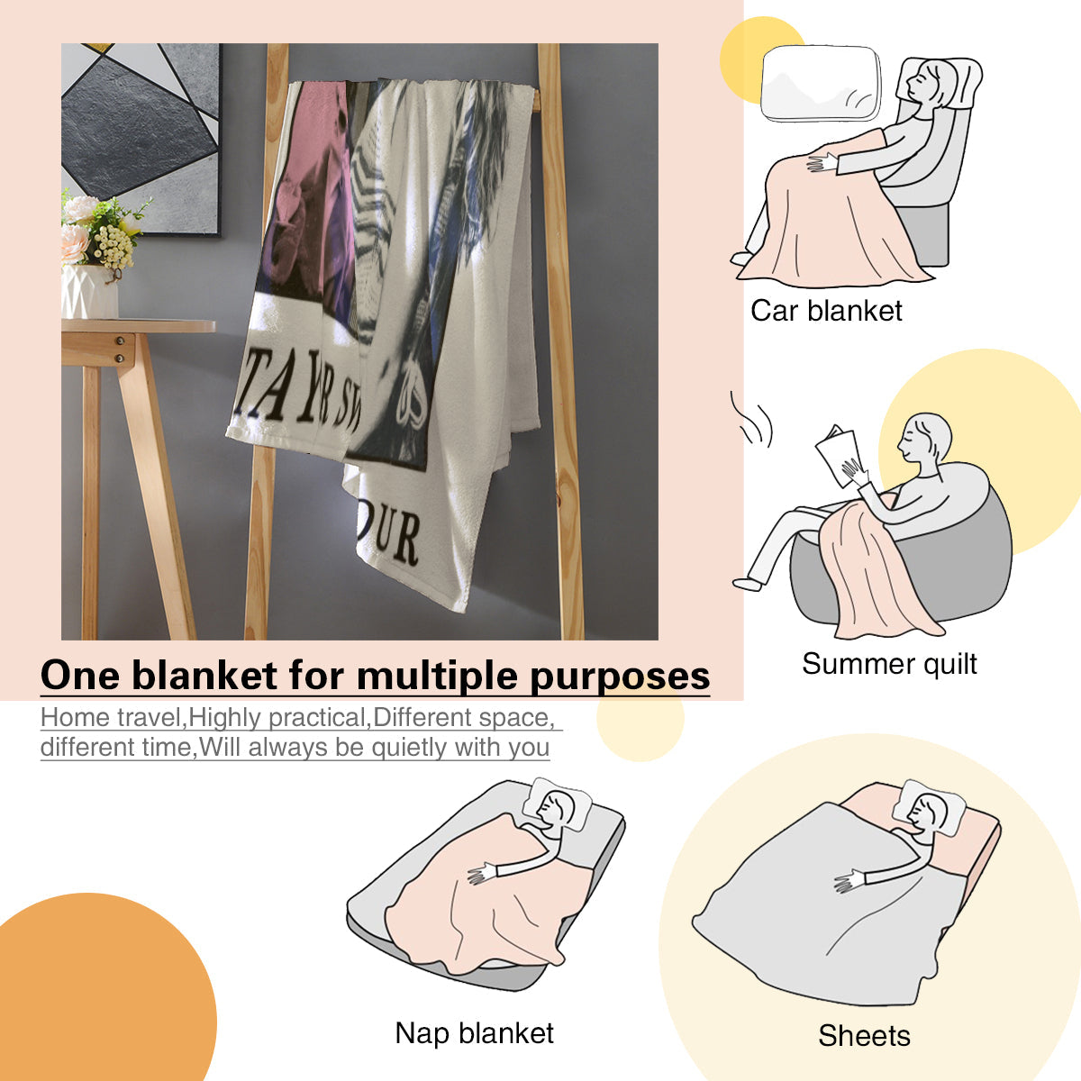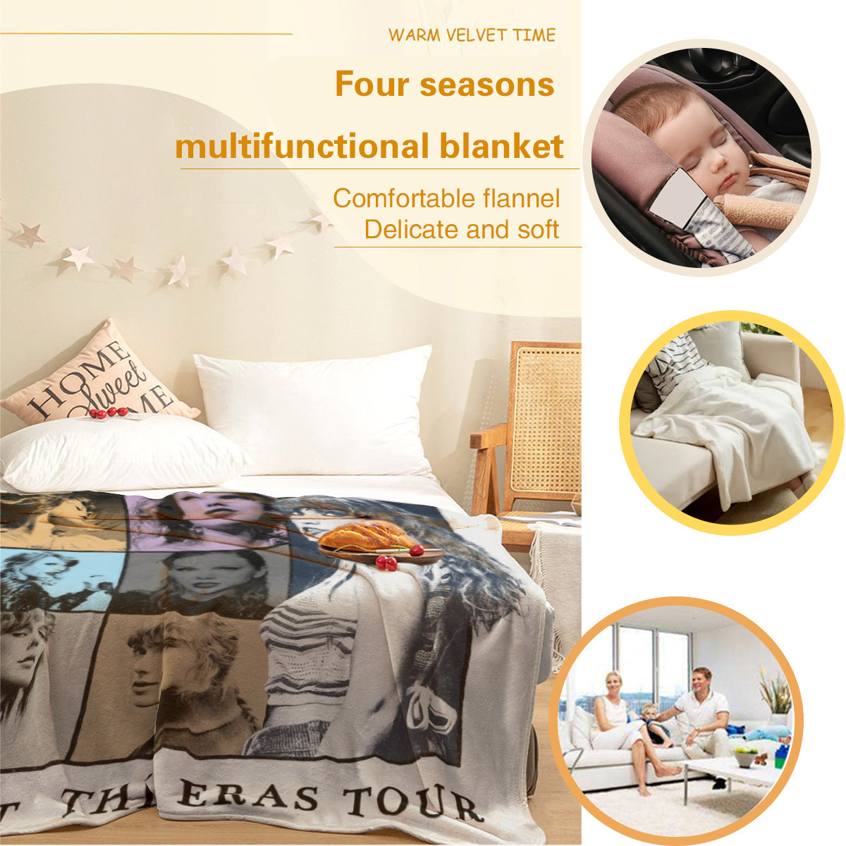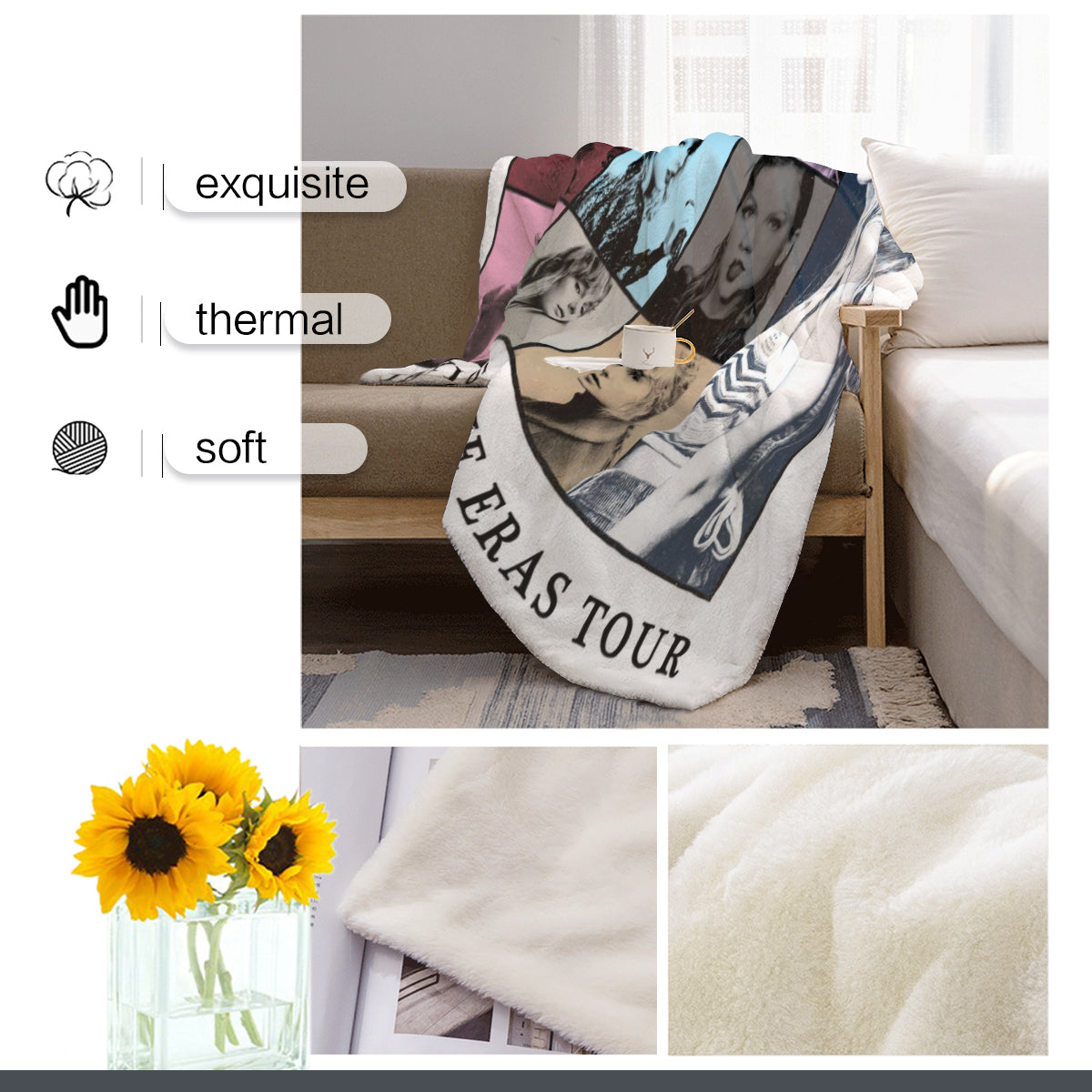 【Taylor Swift The Eras Tour Decor】 This cute Taylor Swift The Eras Tour blanket throw uses a Taylor Swift The Eras Tour pattern. The unique Taylor Swift The Eras Tour design adds decoration to your room, allowing blankets to easily blend into your home decoration style, making your home warm and stylish.