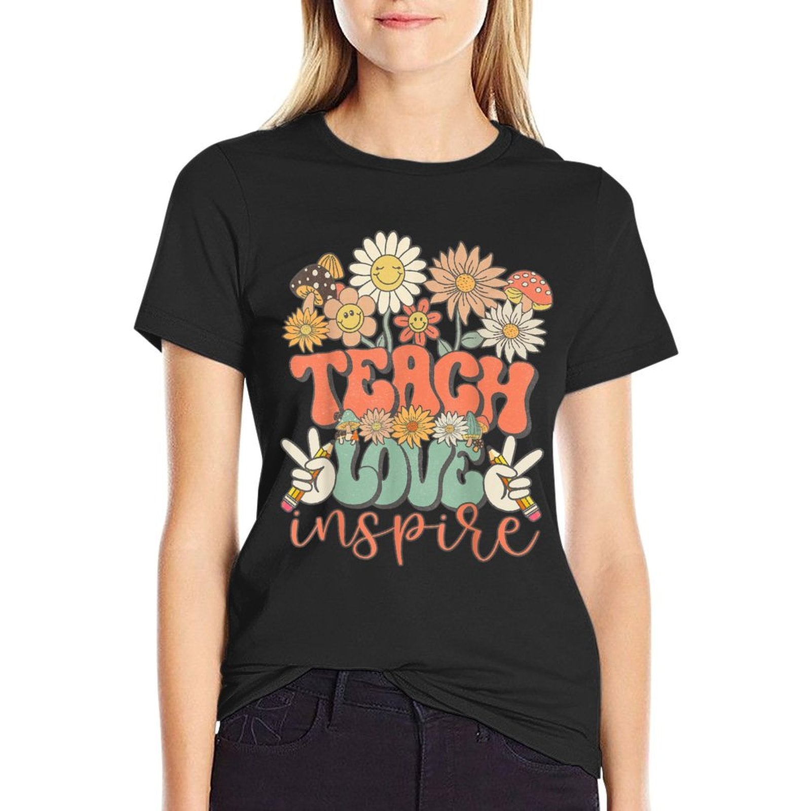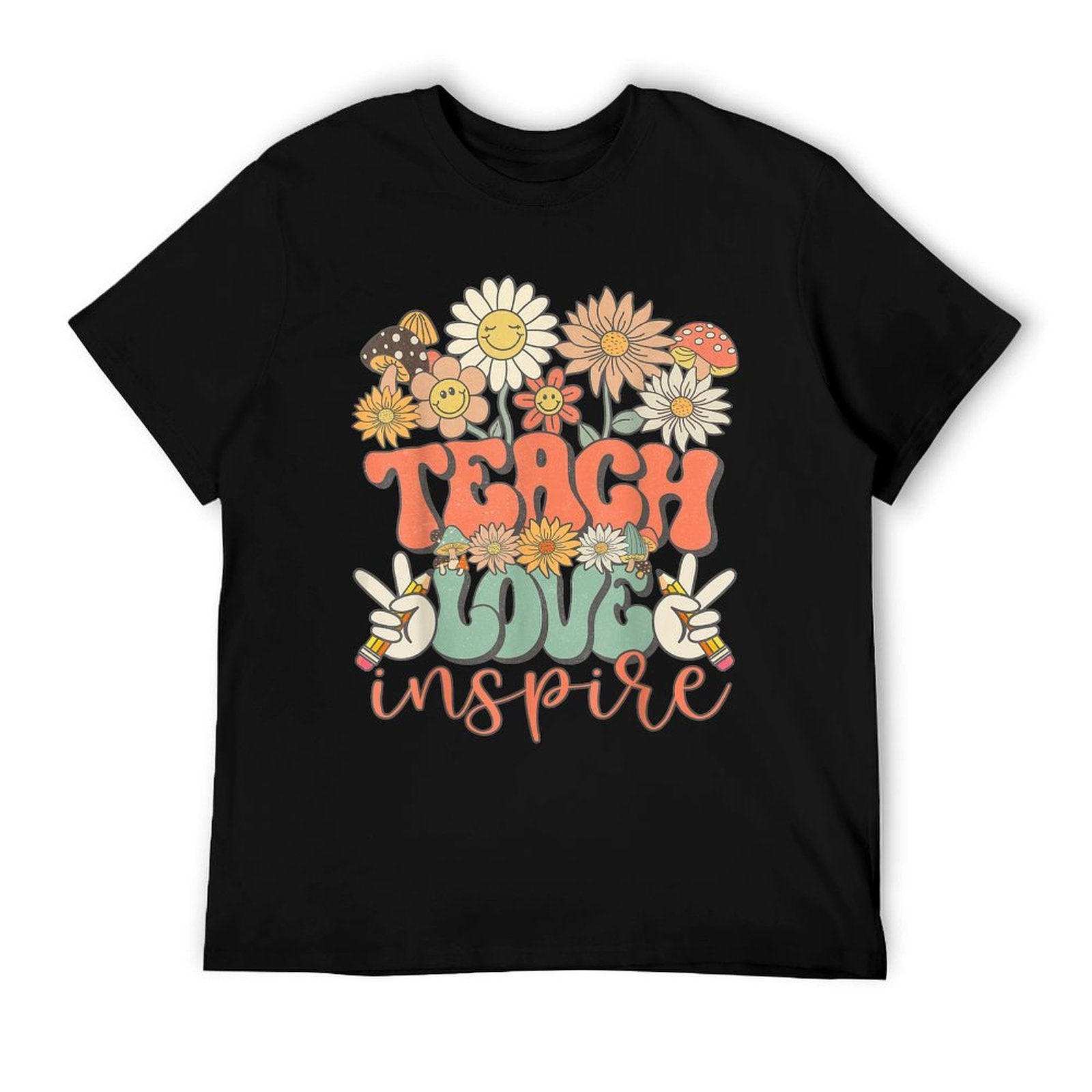 - Naturally breathable for Teach Love Inspire Retro Groovy Daisy Back To School Teacher summer adventures, from humid hikes to backyard BBQs.