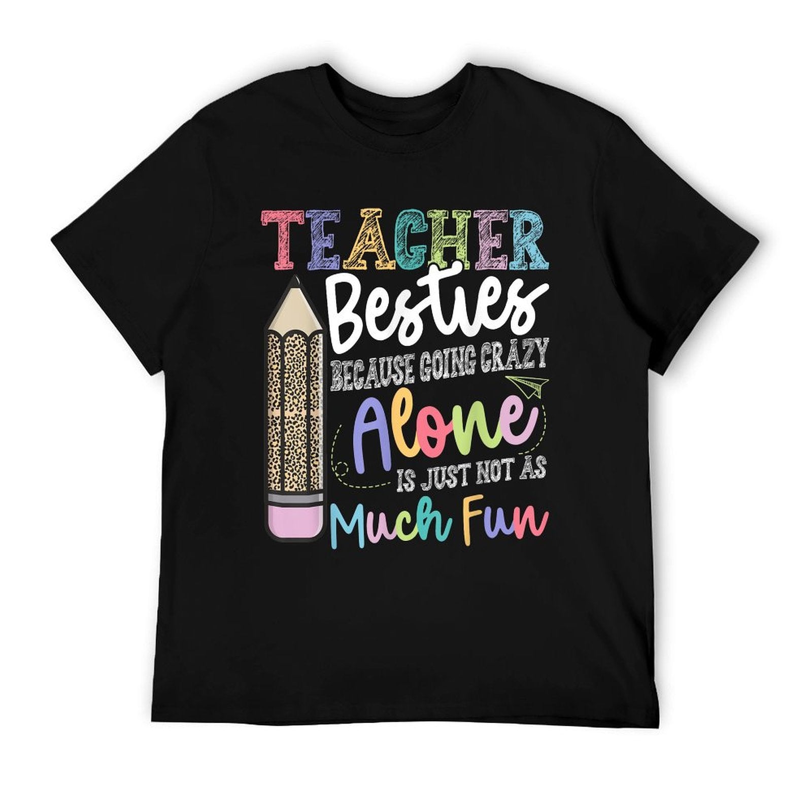 ✔️ Color-Conscious: Artwork contrasts with fabric to prevent ink issues – a true Teacher Besties Because Going Crazy Alone Is Not As Much Fun quality guarantee.