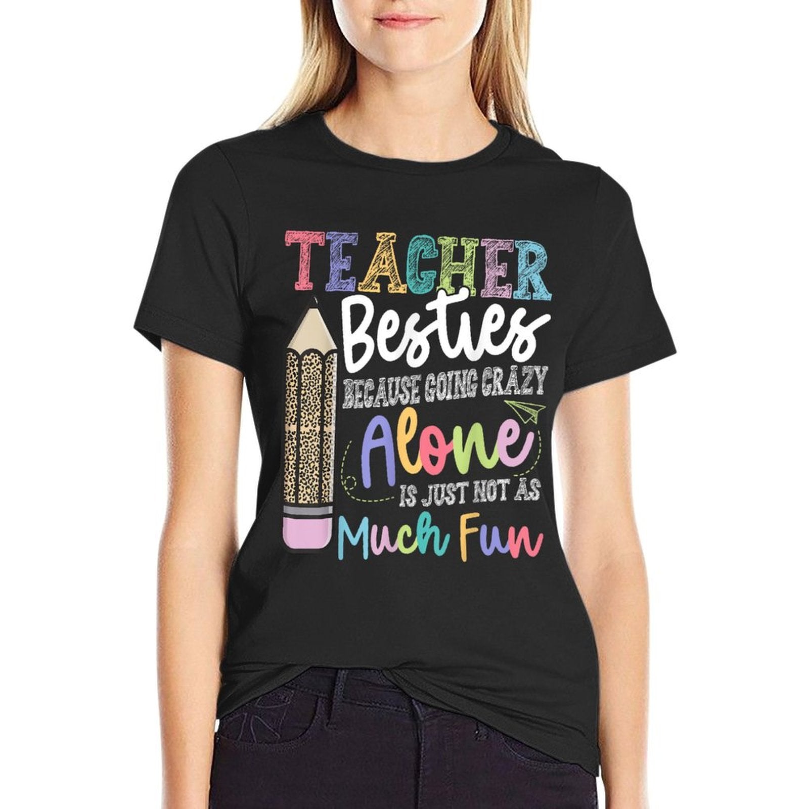 Teacher Besties Because Going Crazy Alone Is Not As Much Fun T-Shirt ‐ Teacher Besties Because going crazy alone is / XL