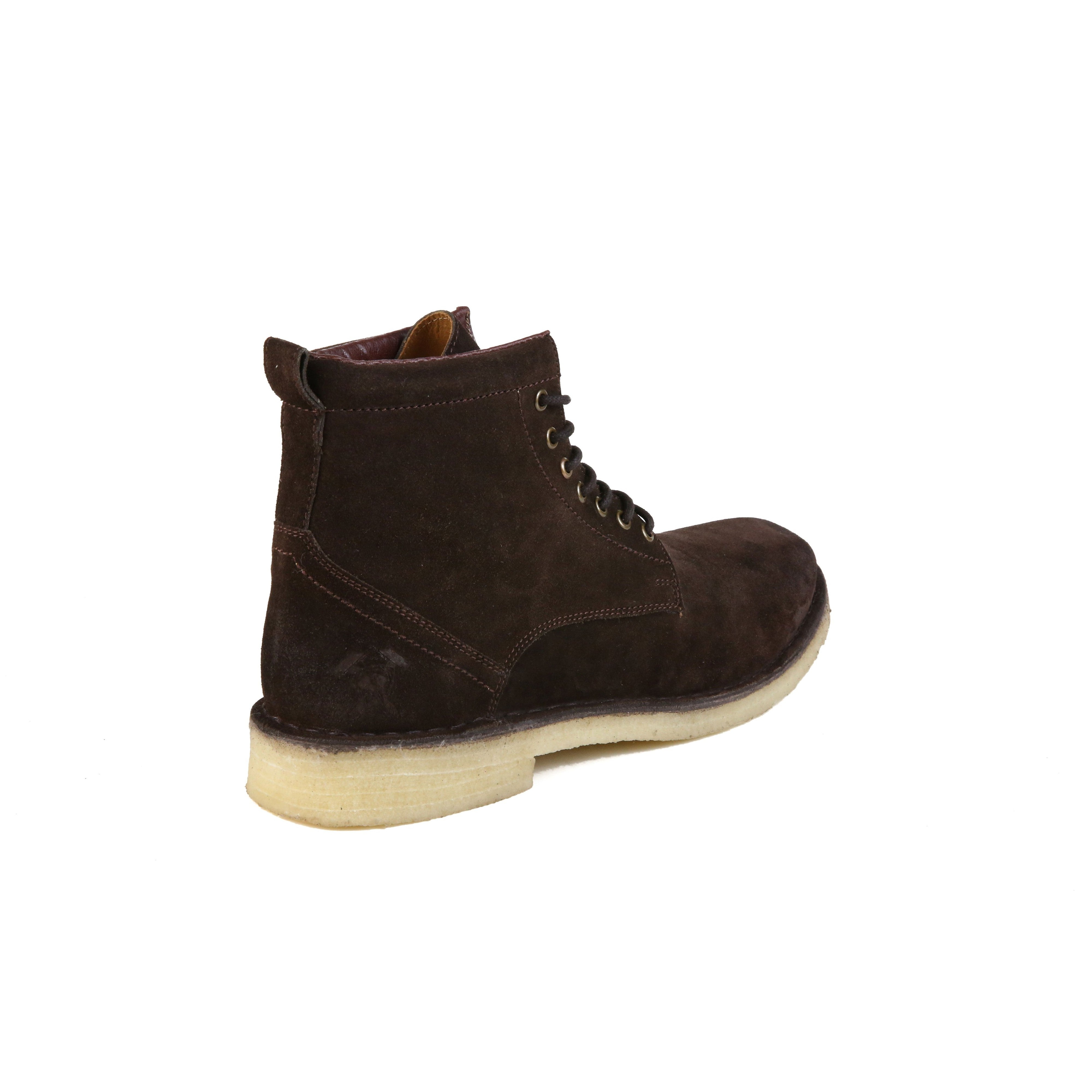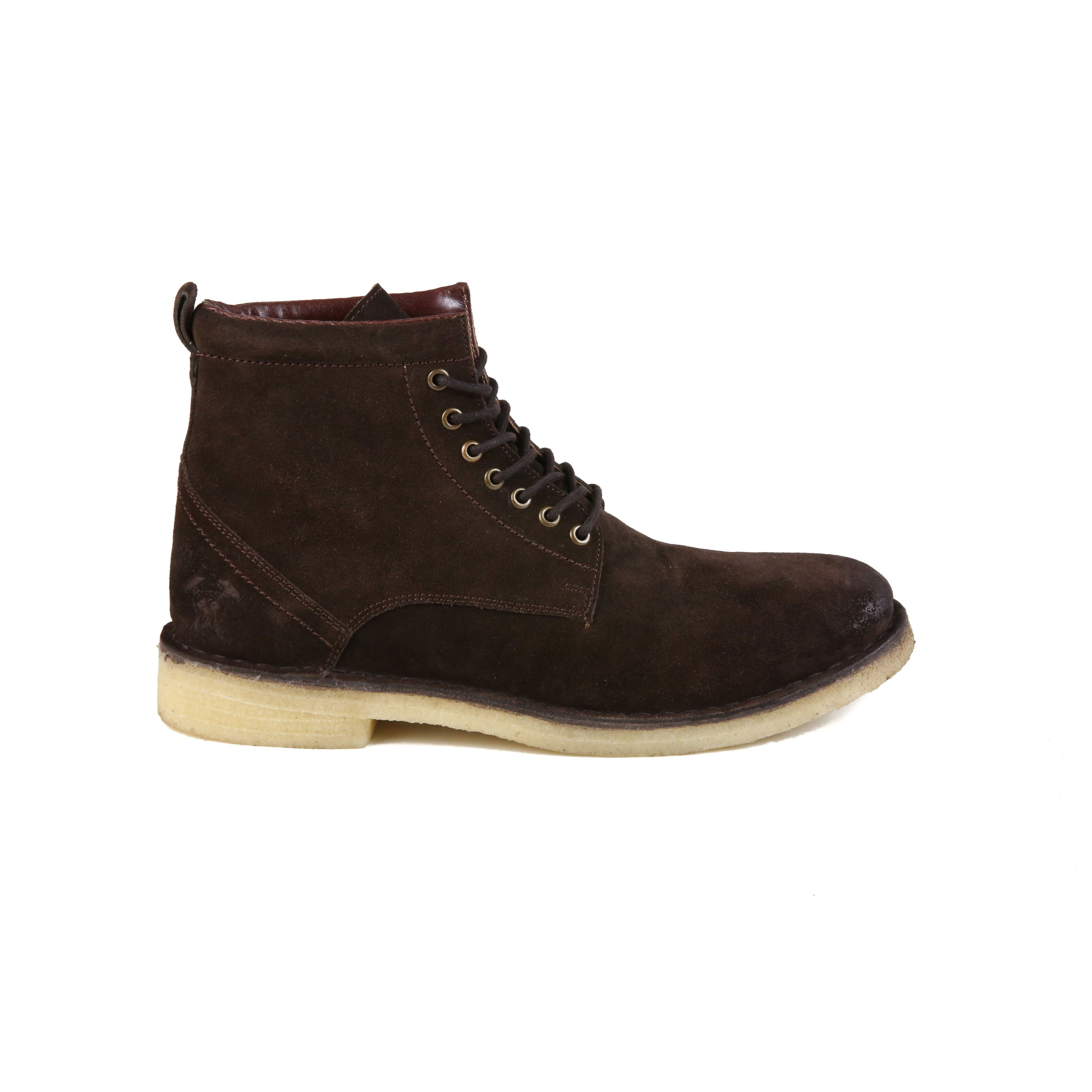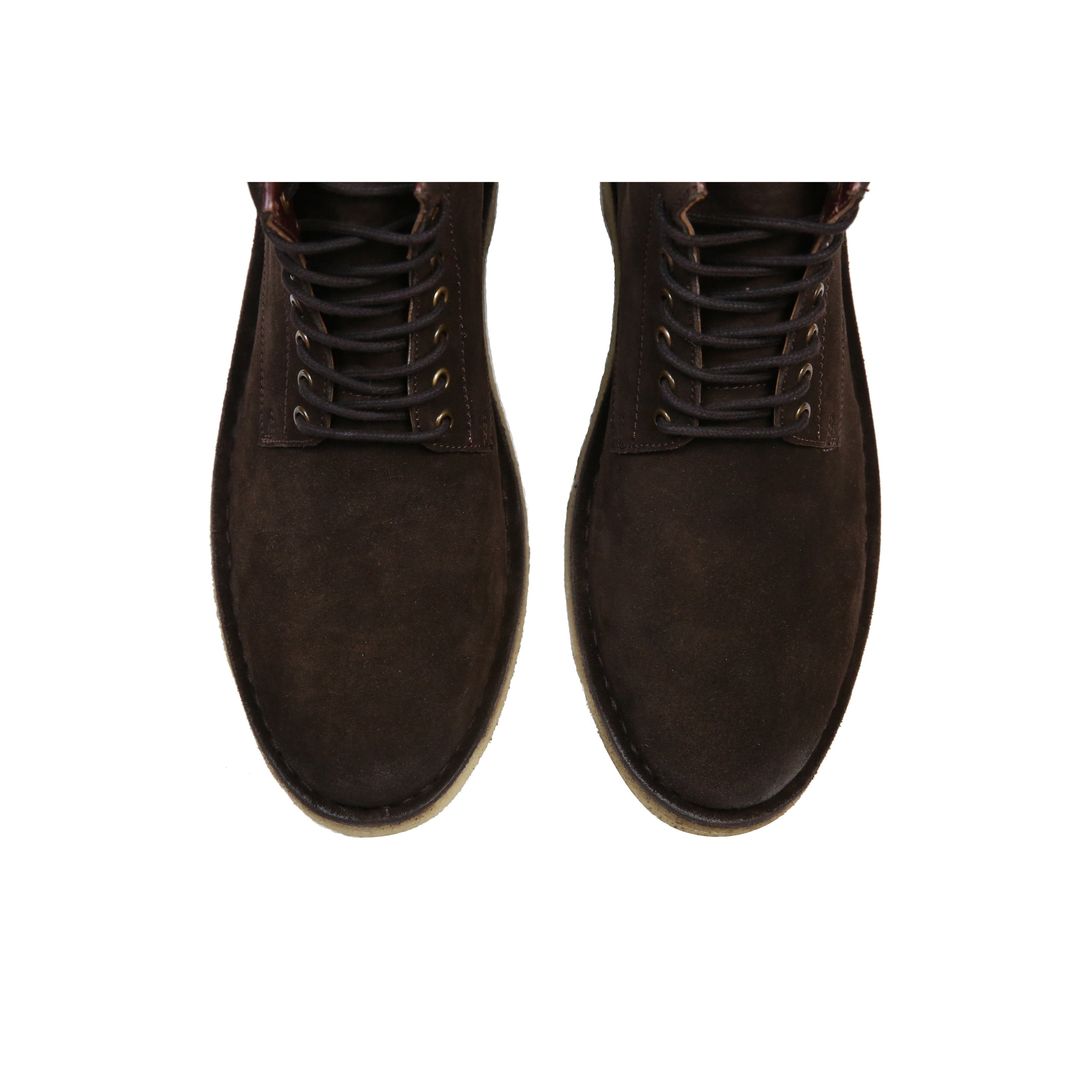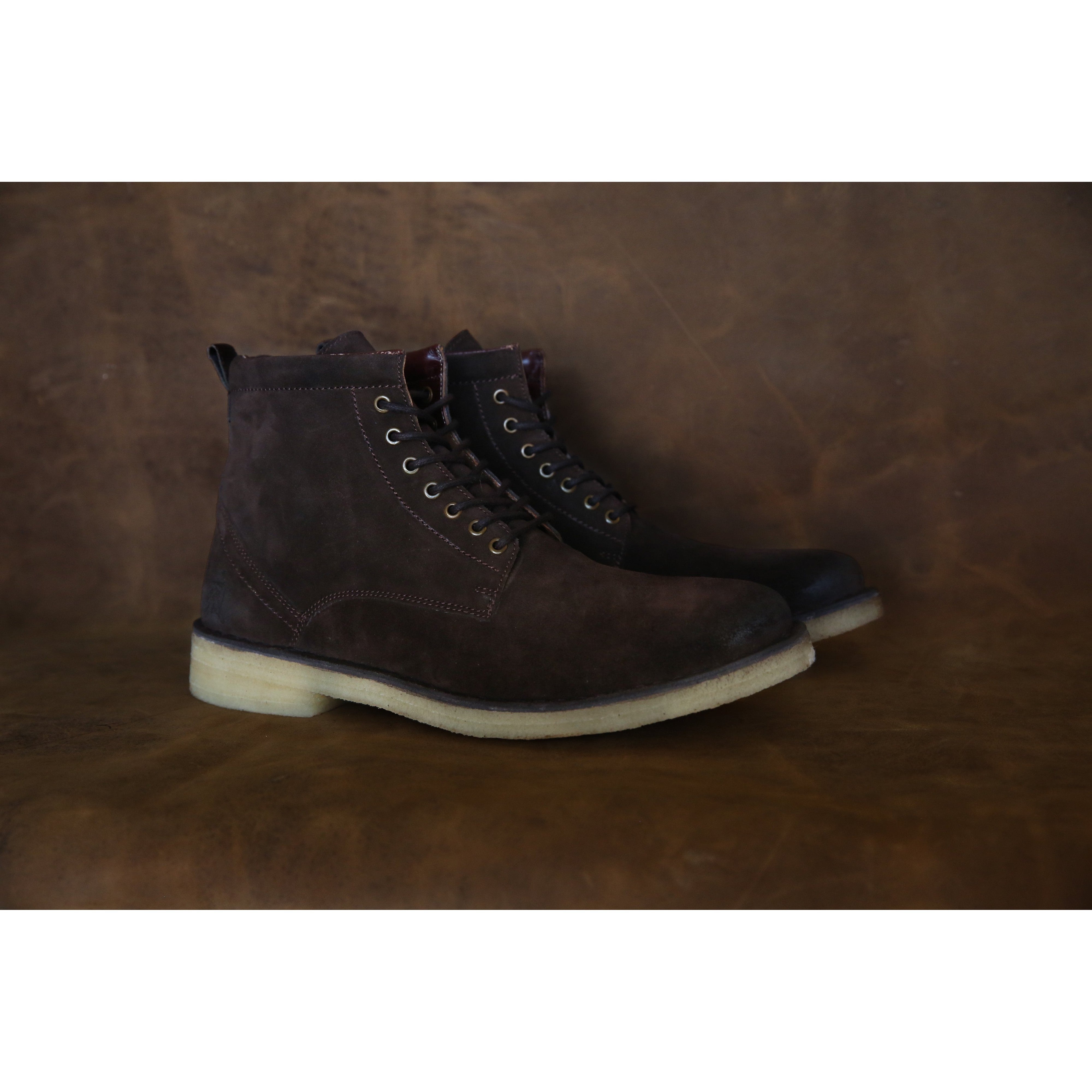 We built this handsome urban hiker six-eyelets high with a padded leather collar, on a stitch-out construction and a double layer outsole of real plantation crepe. Fashion-forward and traditionalist alike will love this perfect blend of cool, casual, and comfort. We lightly burnish the toes and heels of the suede uppers for added character. Available in classic sand, rich chocolate, and black black.
