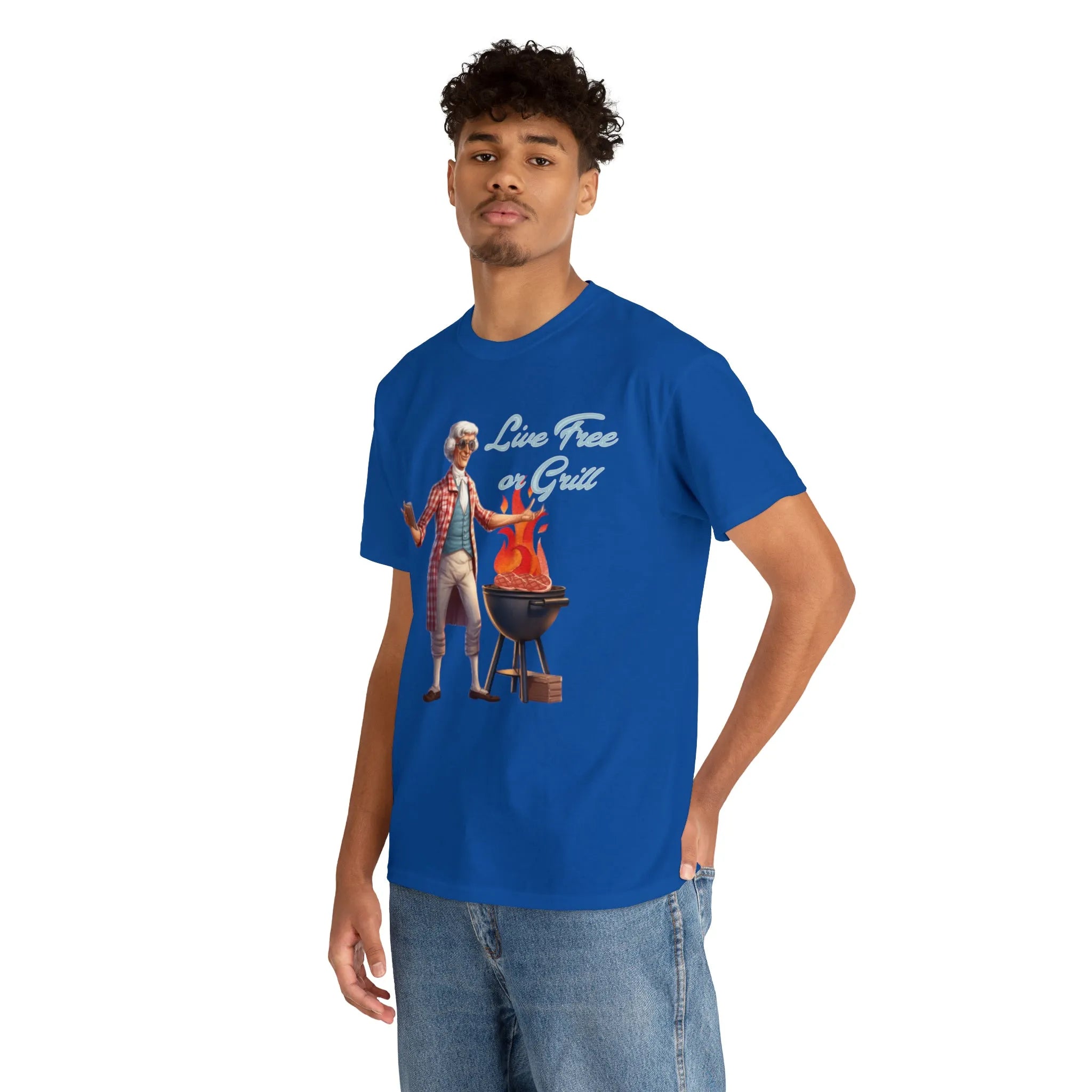 Thomas Jefferson Live Free or Grill Unisex Heavy Cotton Tee ‐ Royal / M