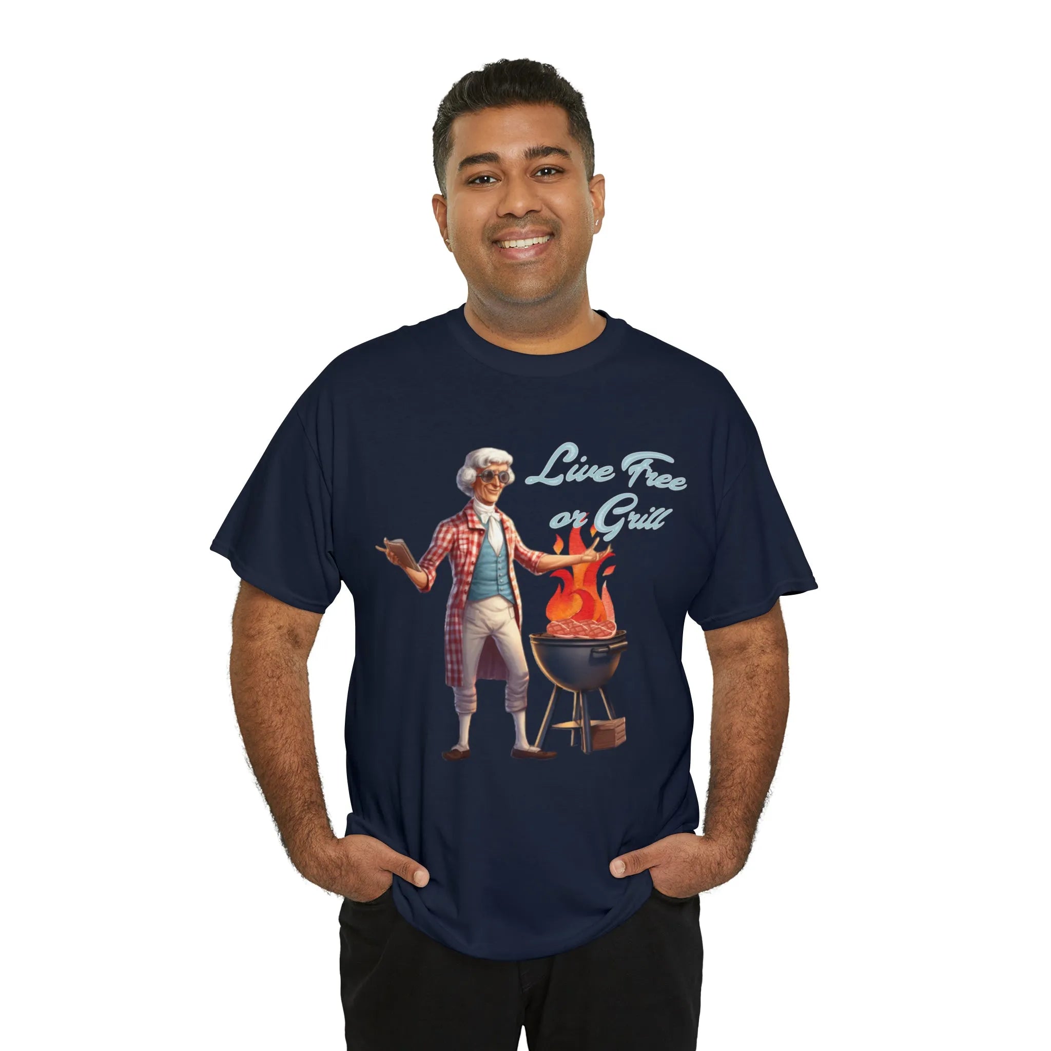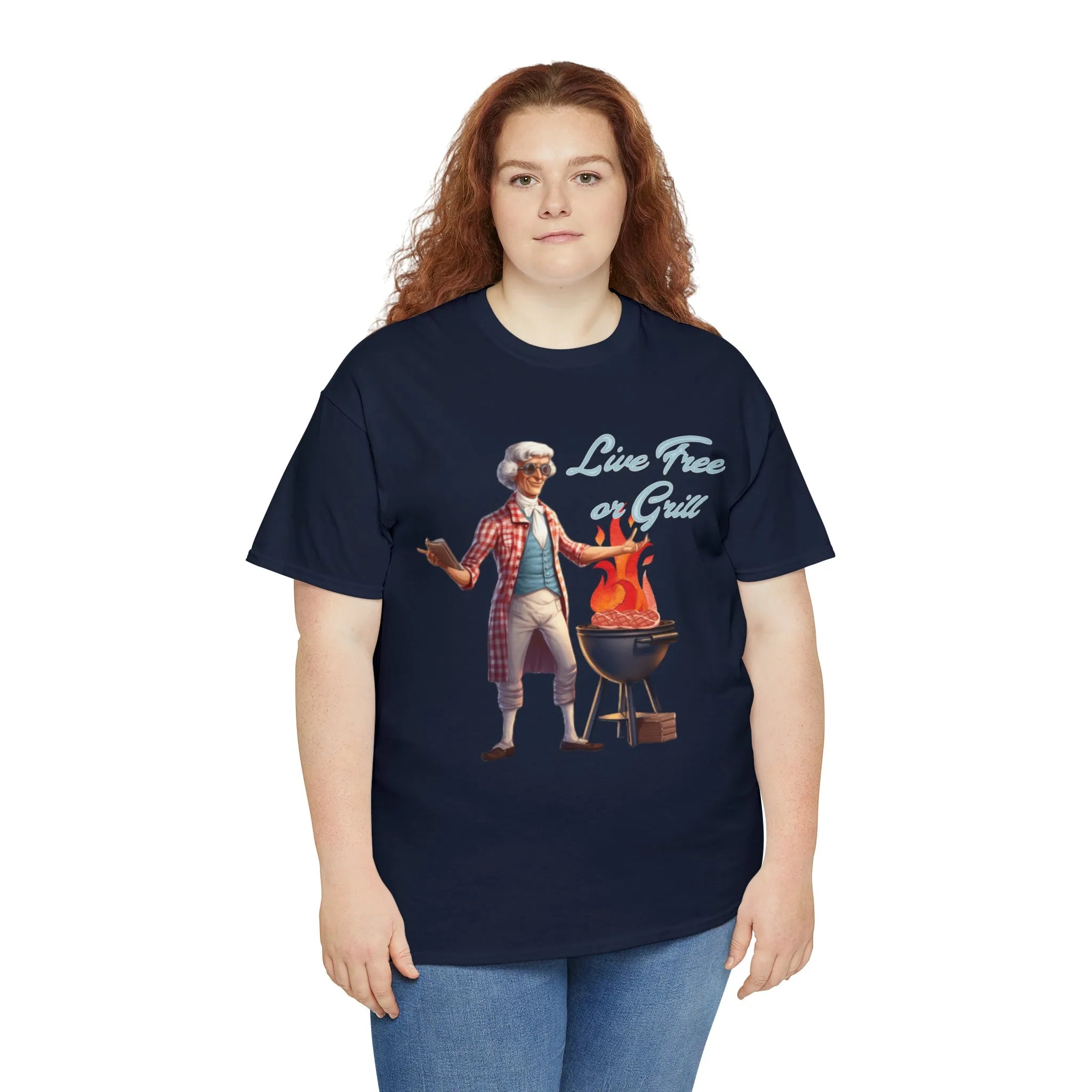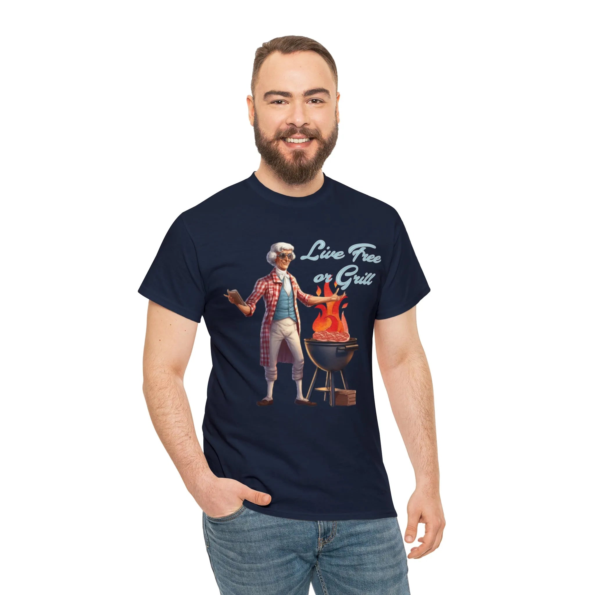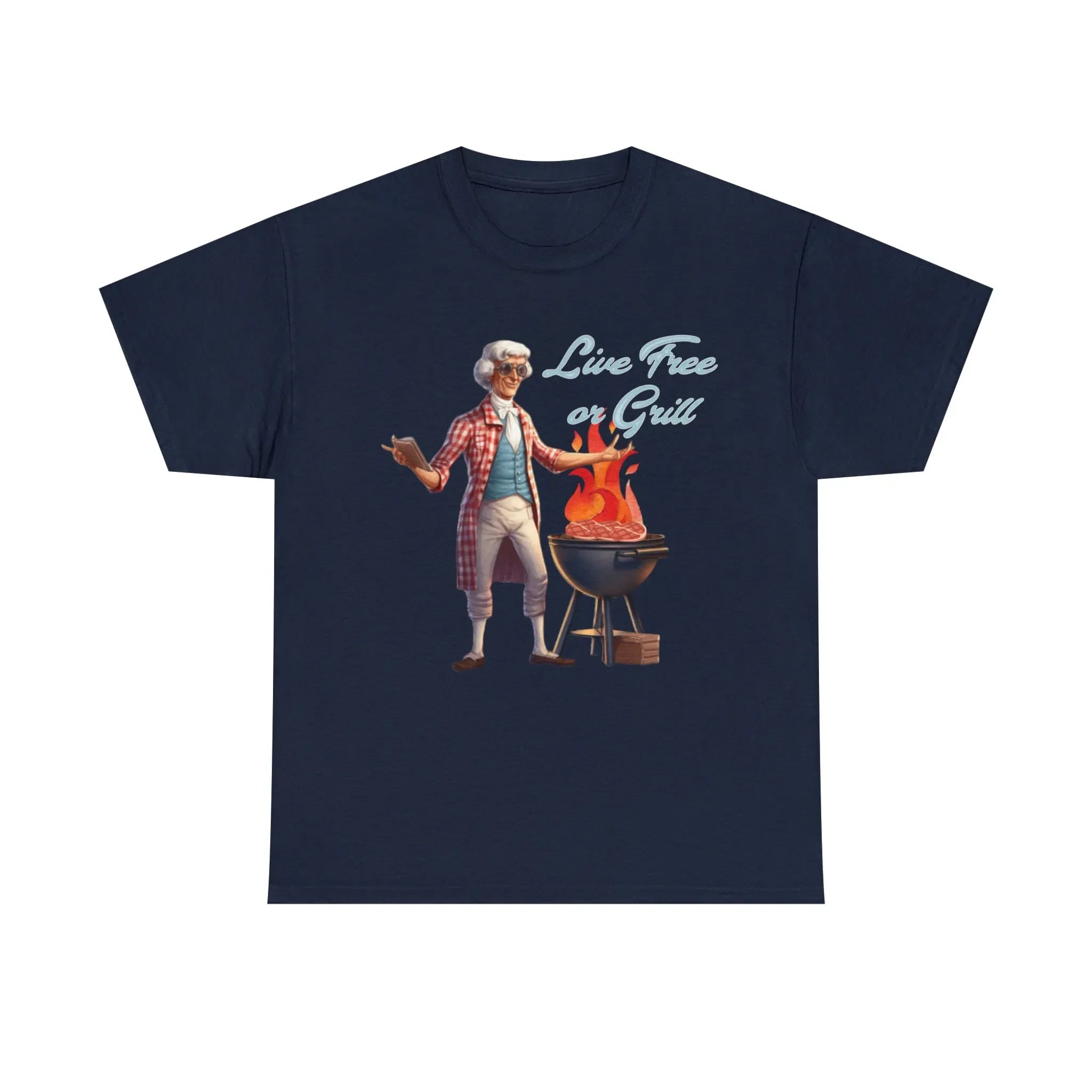 Thomas Jefferson Live Free or Grill Unisex Heavy Cotton Tee ‐ Navy / S
