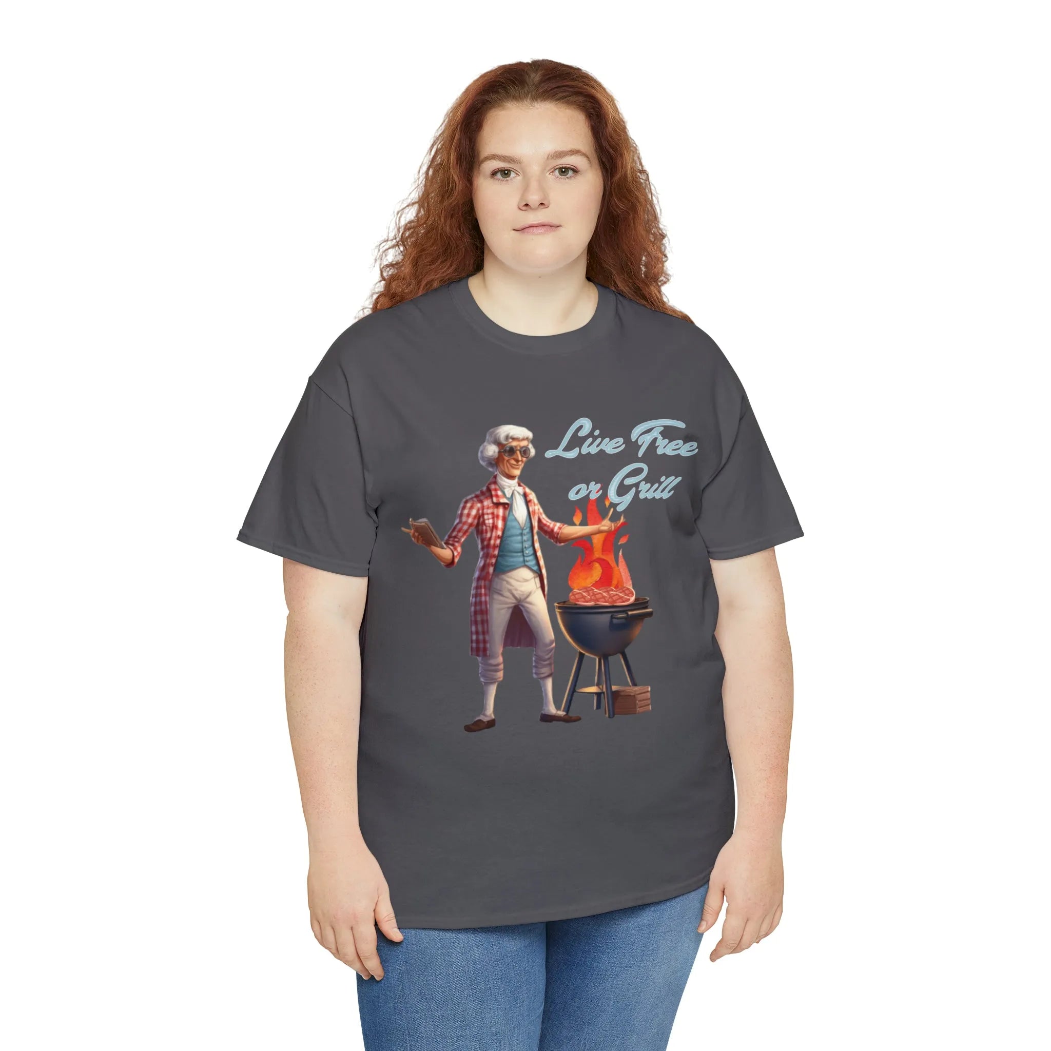 Thomas Jefferson Live Free or Grill Unisex Heavy Cotton Tee ‐ Charcoal / 4XL
