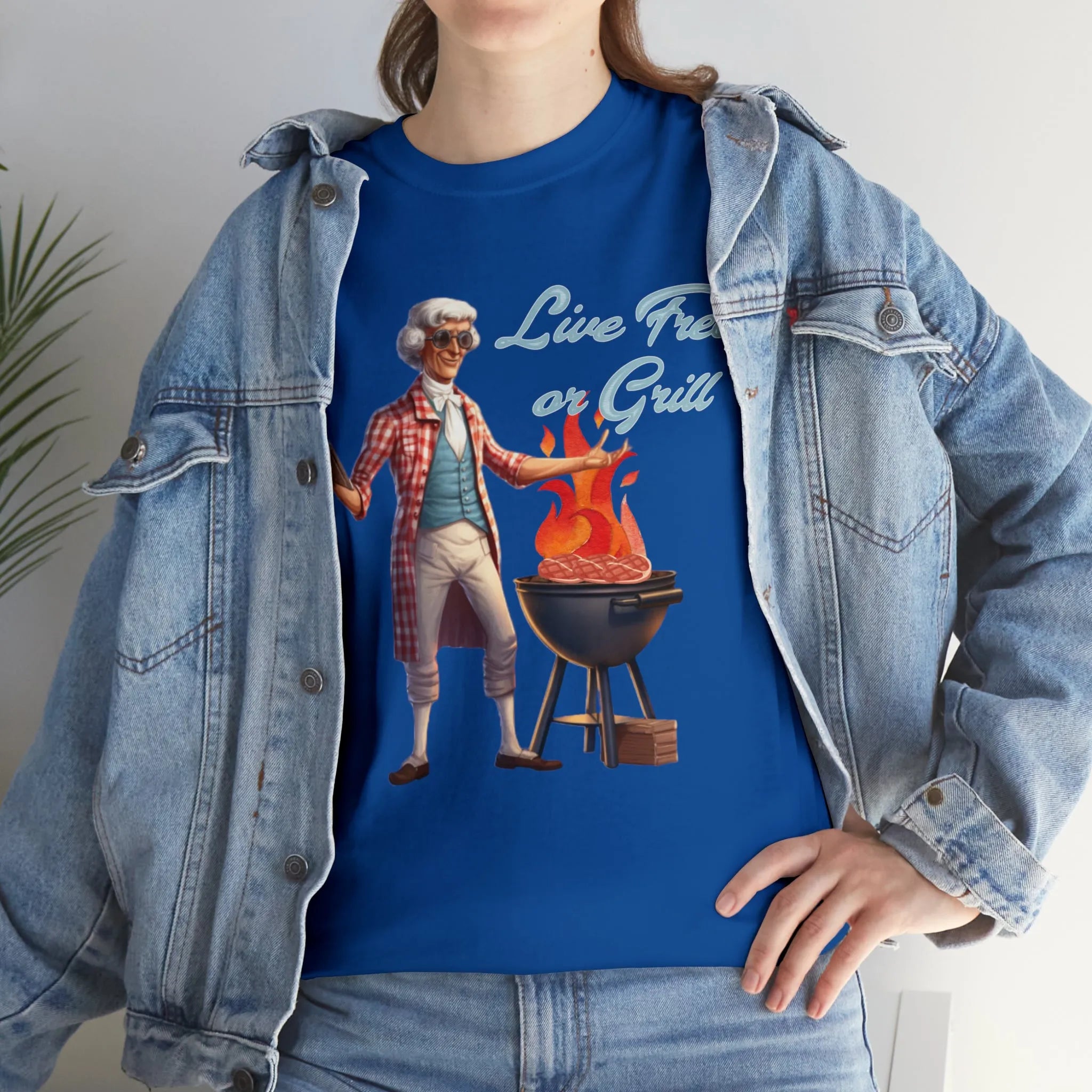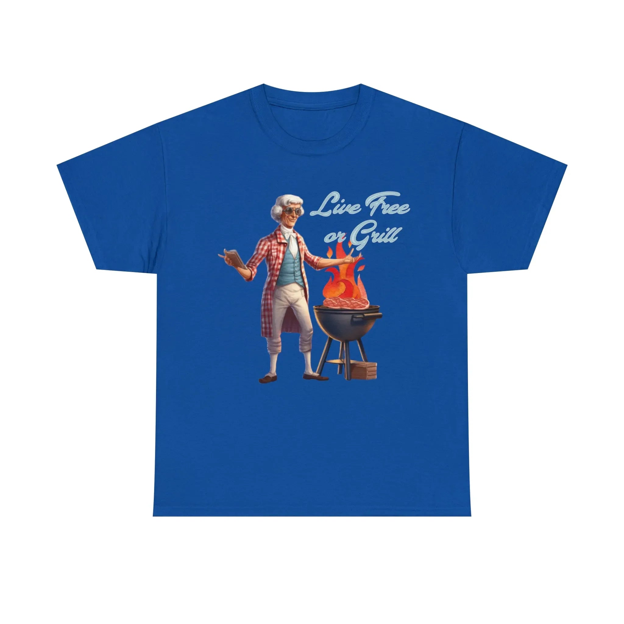 Thomas Jefferson Live Free or Grill Unisex Heavy Cotton Tee ‐ Royal / S