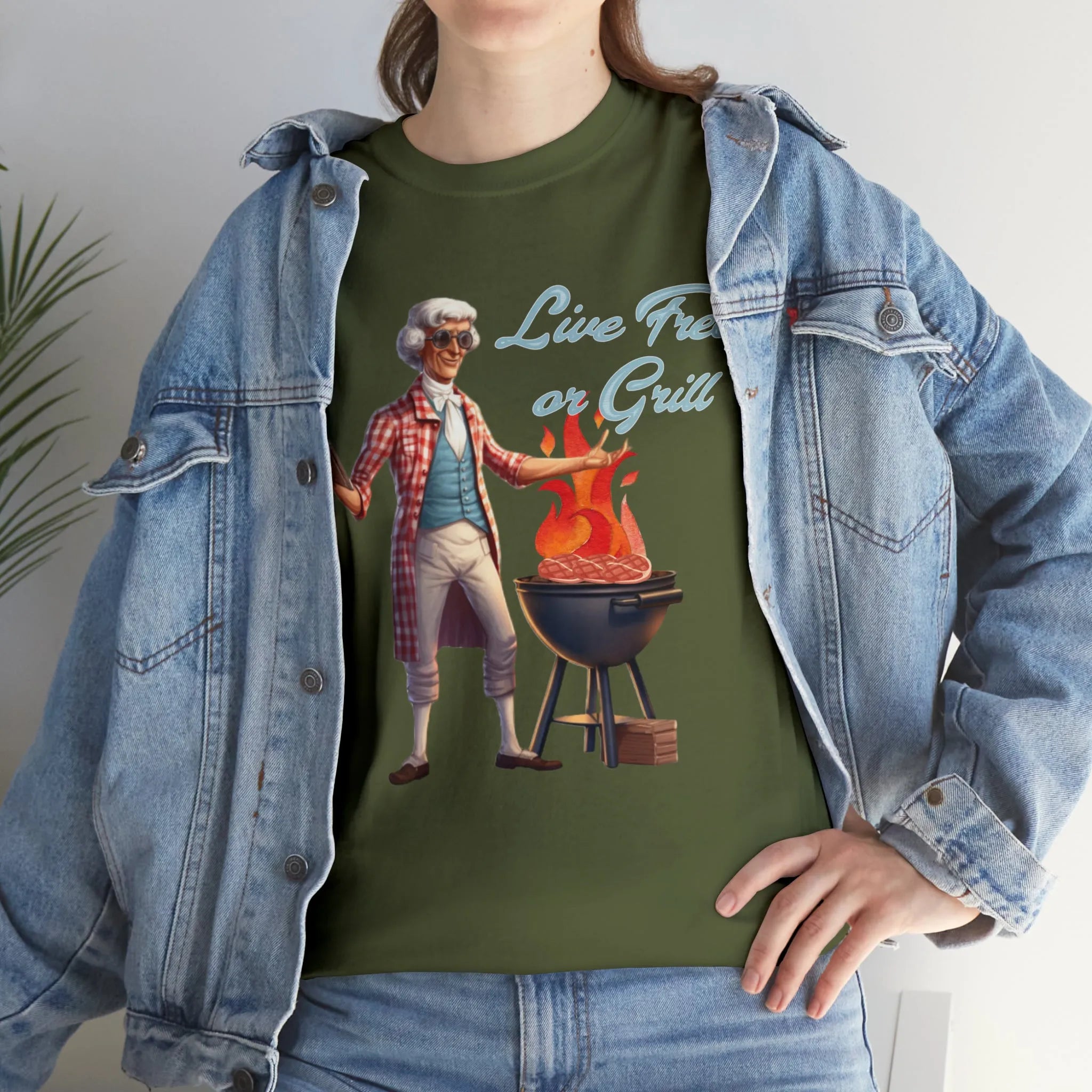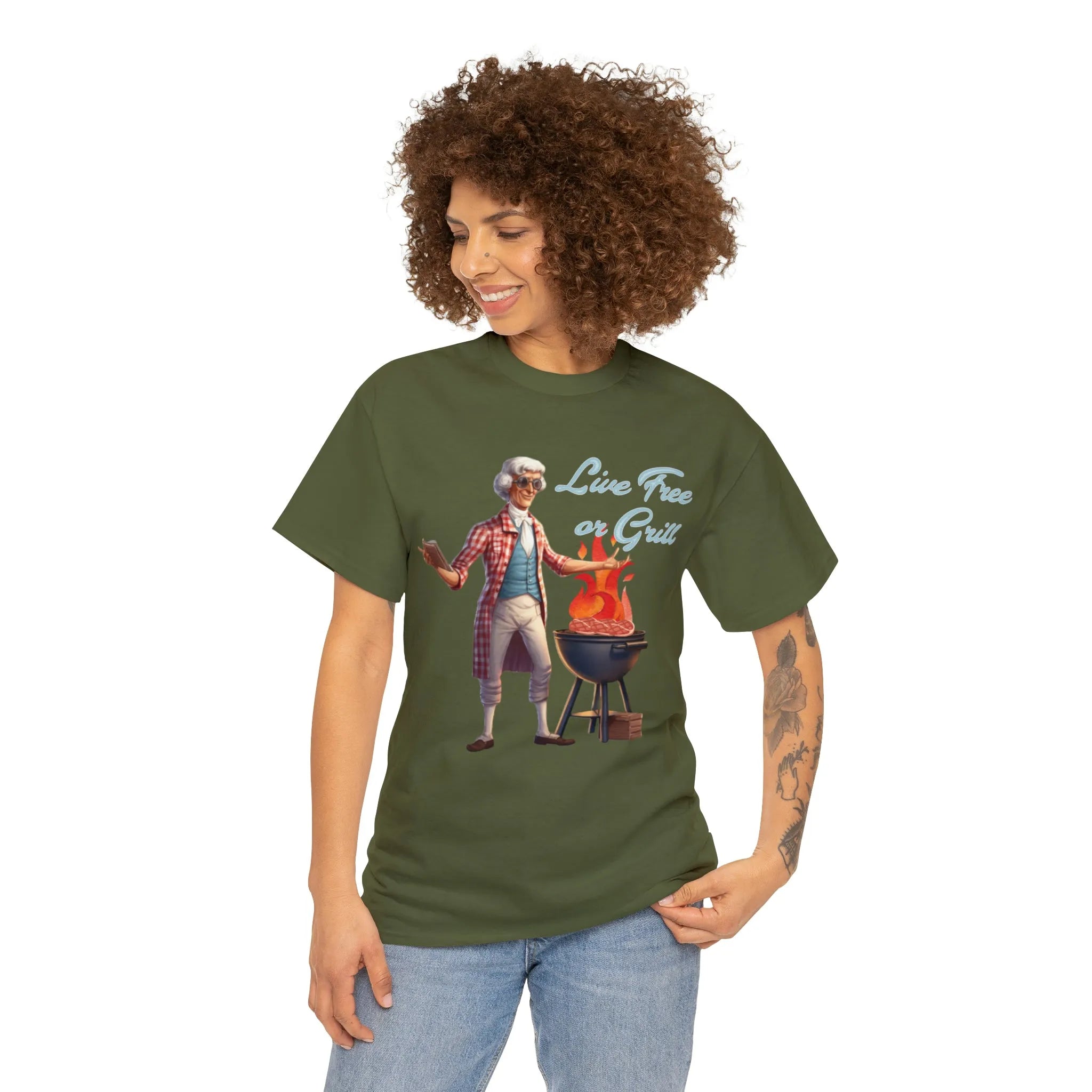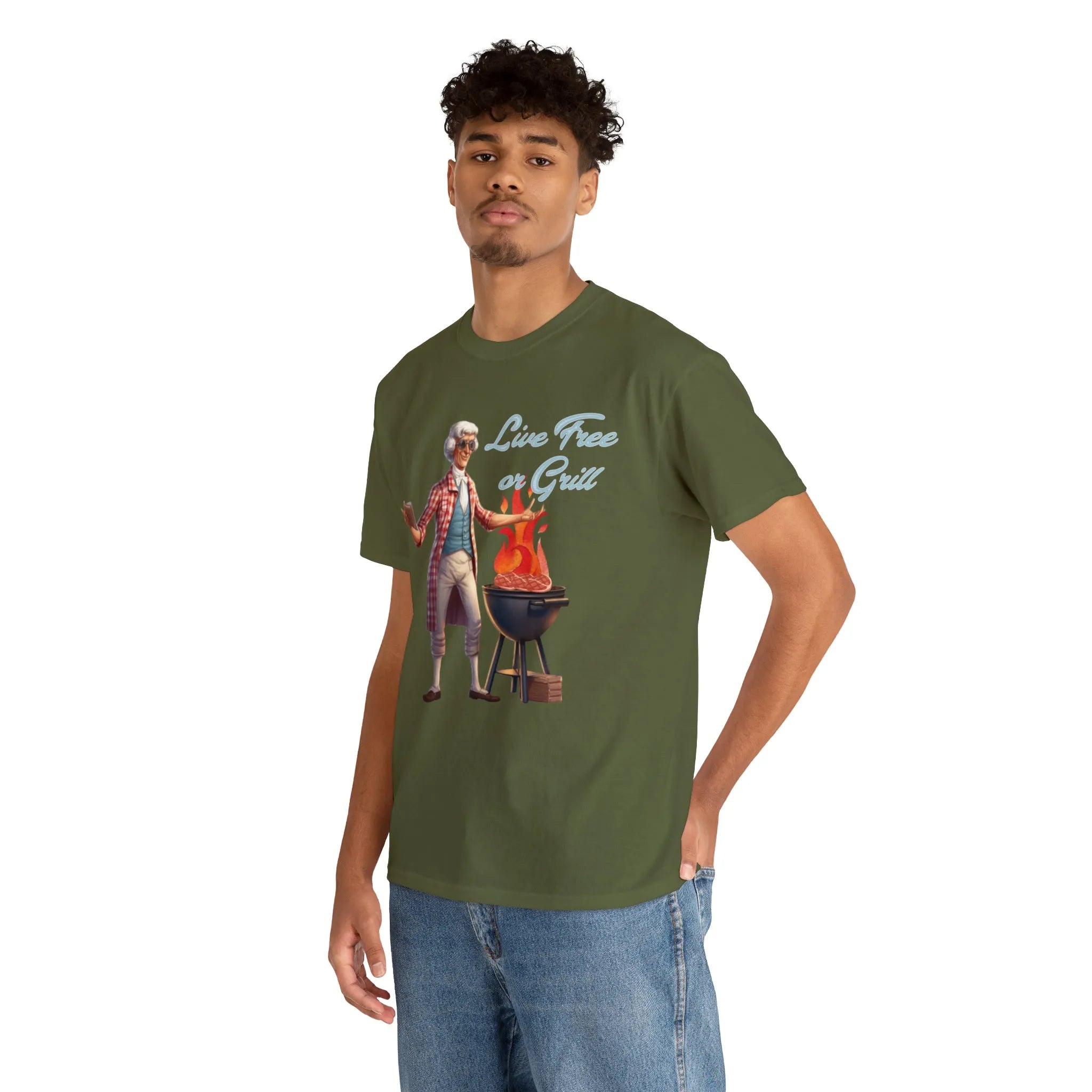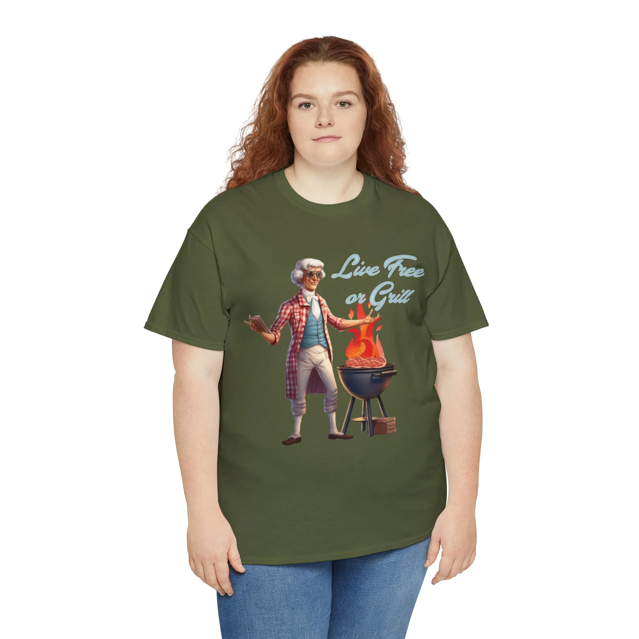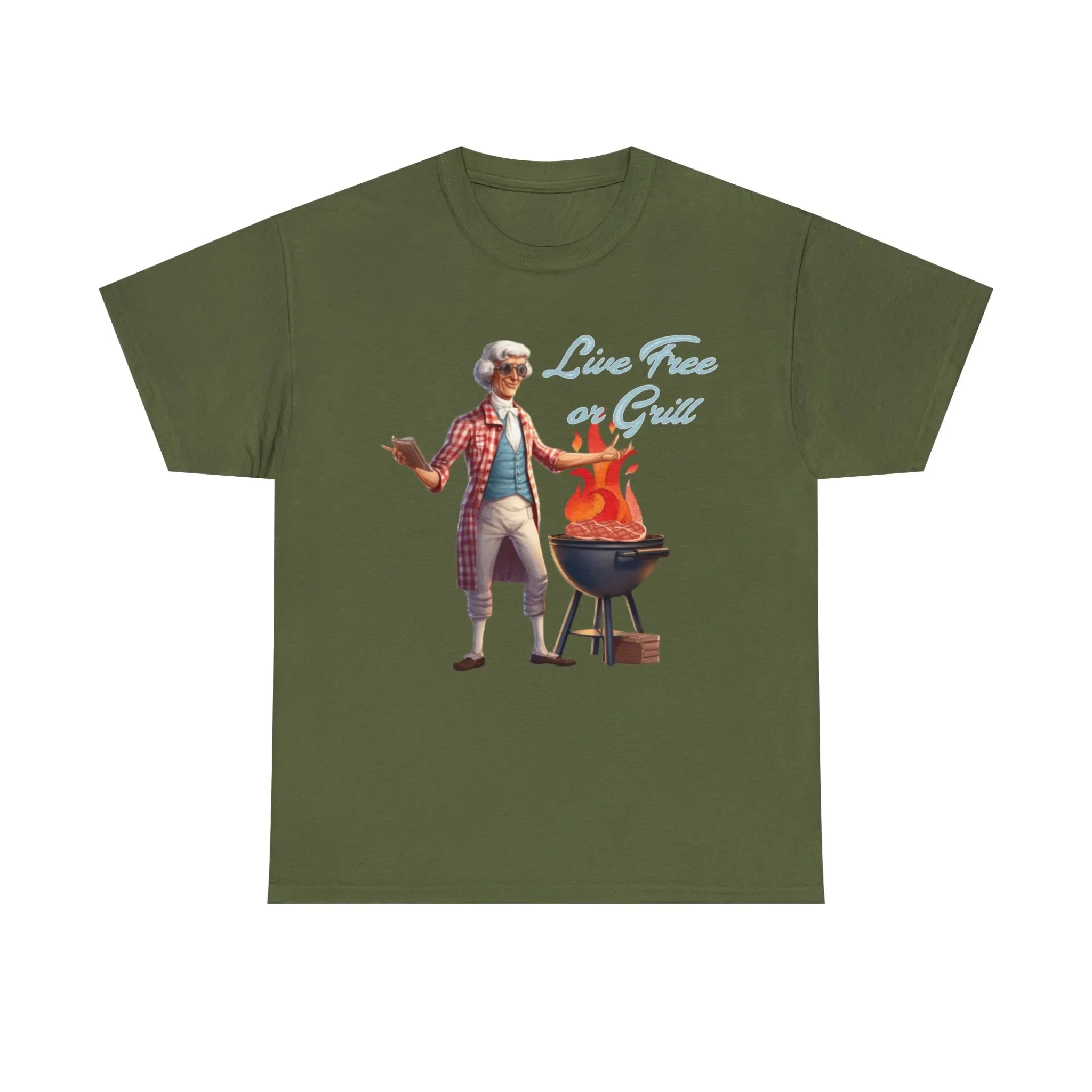Thomas Jefferson Live Free or Grill Unisex Heavy Cotton Tee ‐ Military Green / 4XL