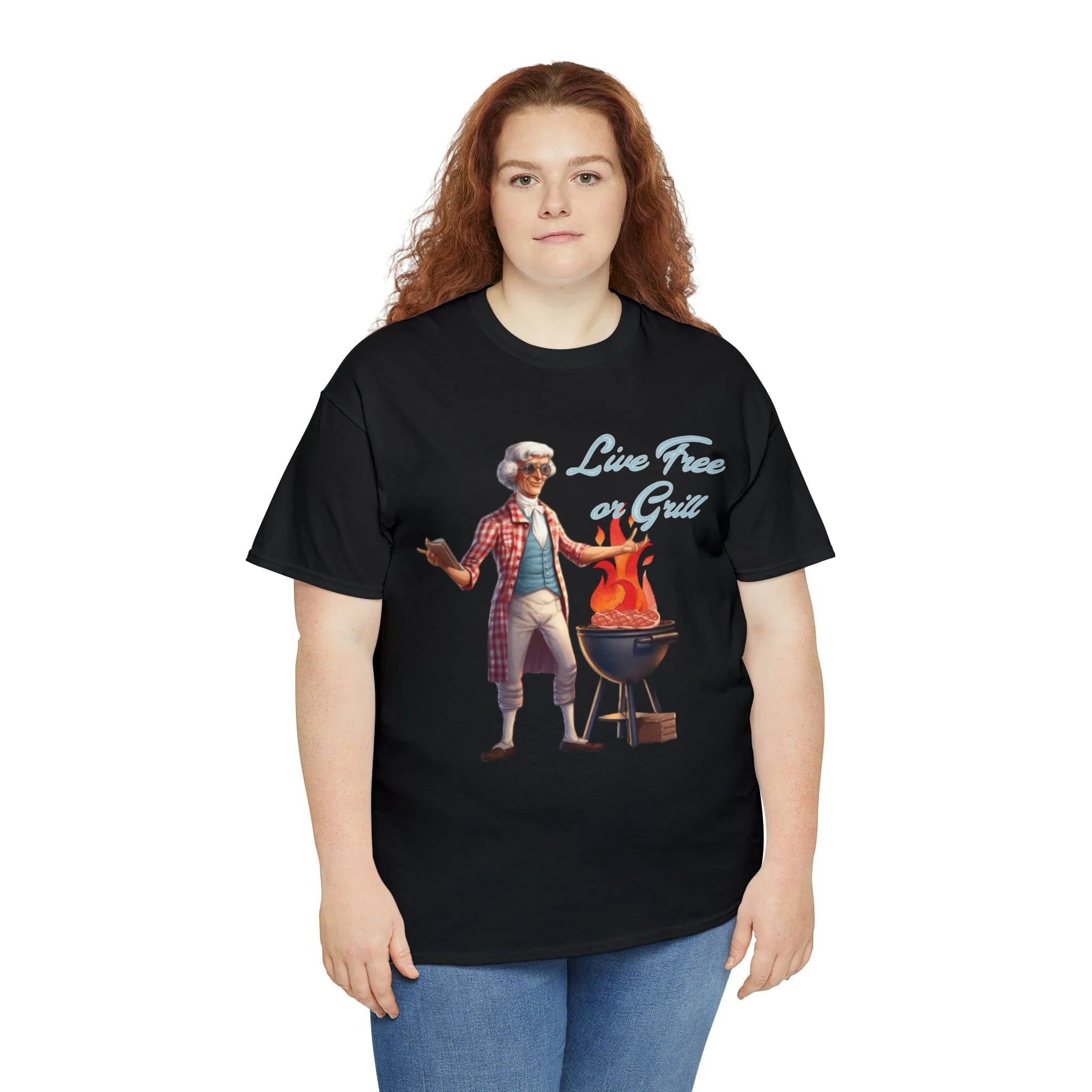 Thomas Jefferson Live Free or Grill Unisex Heavy Cotton Tee ‐ Black / L