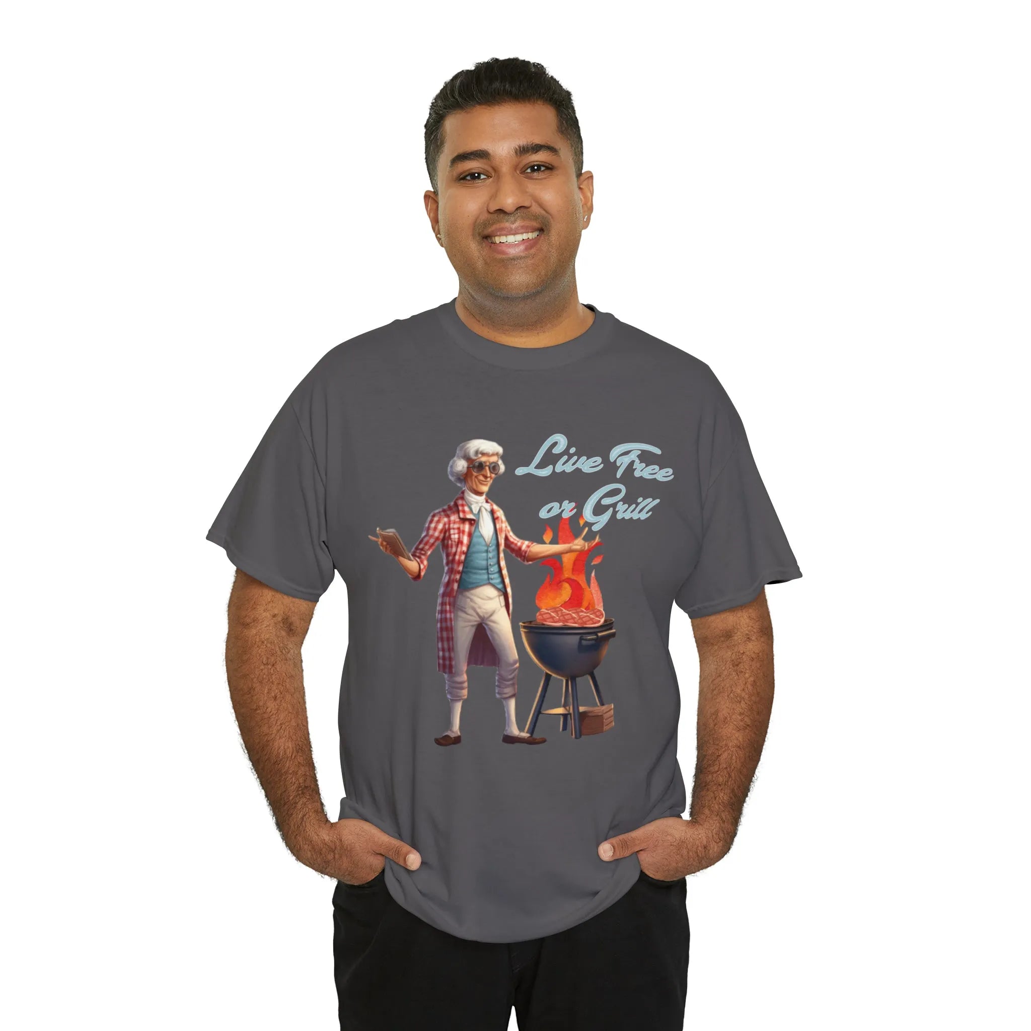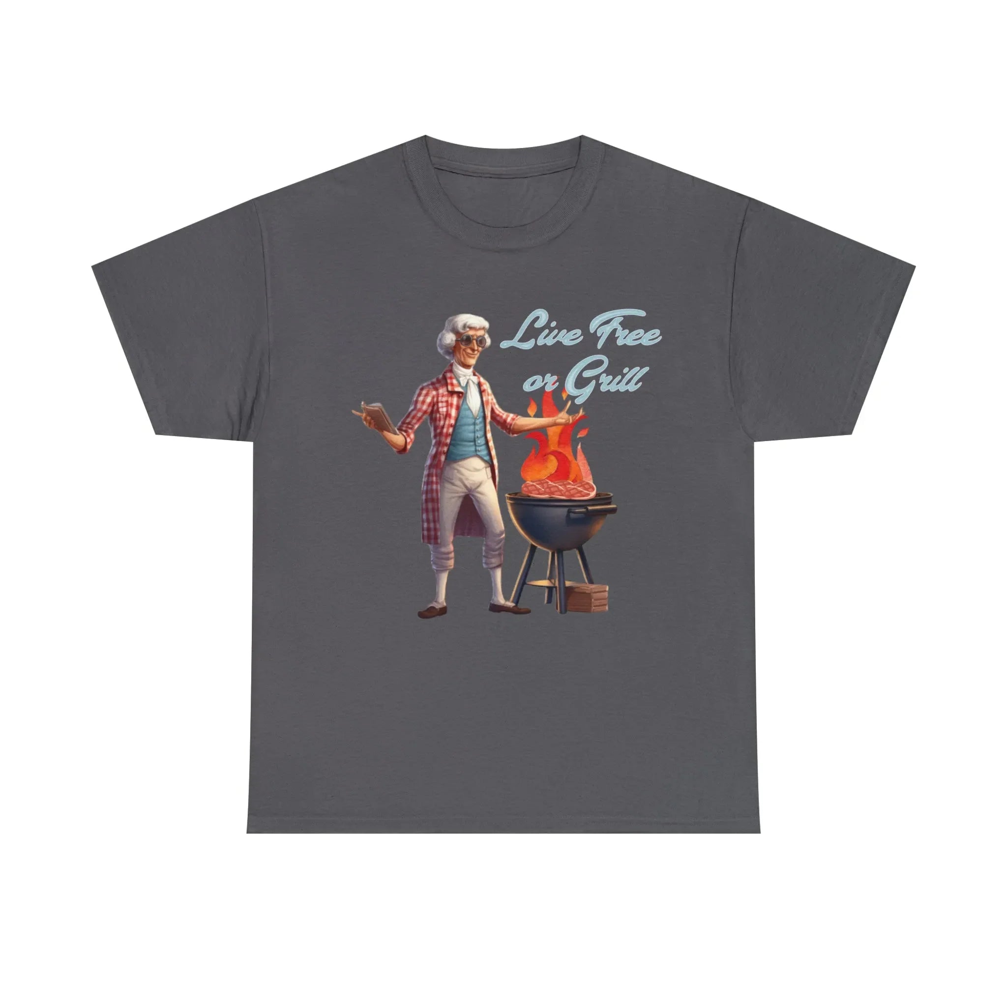 Thomas Jefferson Live Free or Grill Unisex Heavy Cotton Tee ‐ Charcoal / M
