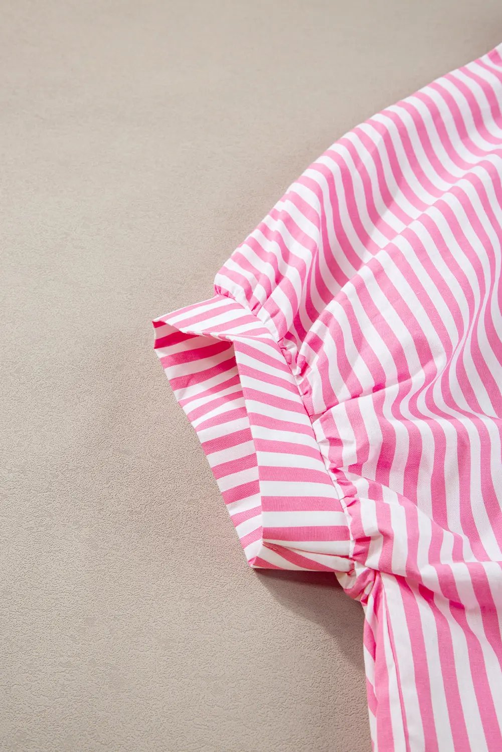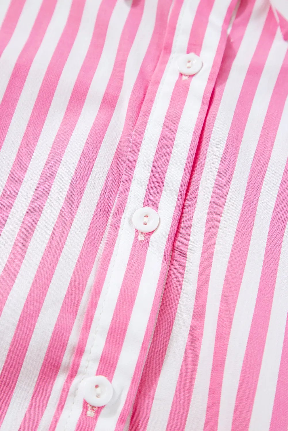 The eye-catching pink stripe pattern adds a fresh, contemporary touch to everyday outfits. This versatile top transitions from daily wear to beach cover-up and pairs well with denim shorts, light-wash jeans, or casual skirts across the four seasons. It is a functional piece designed for comfort and style without compromising on quality.