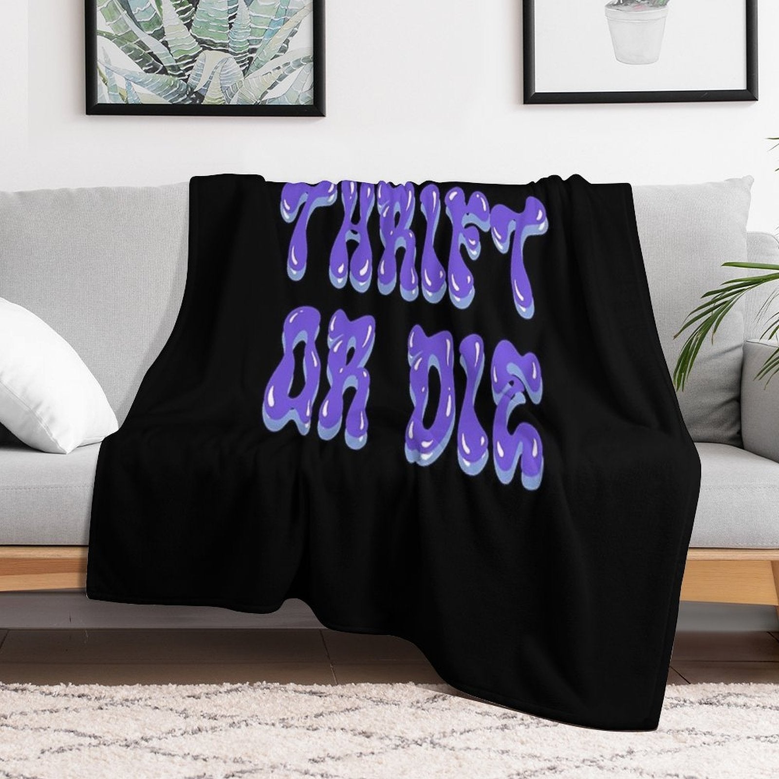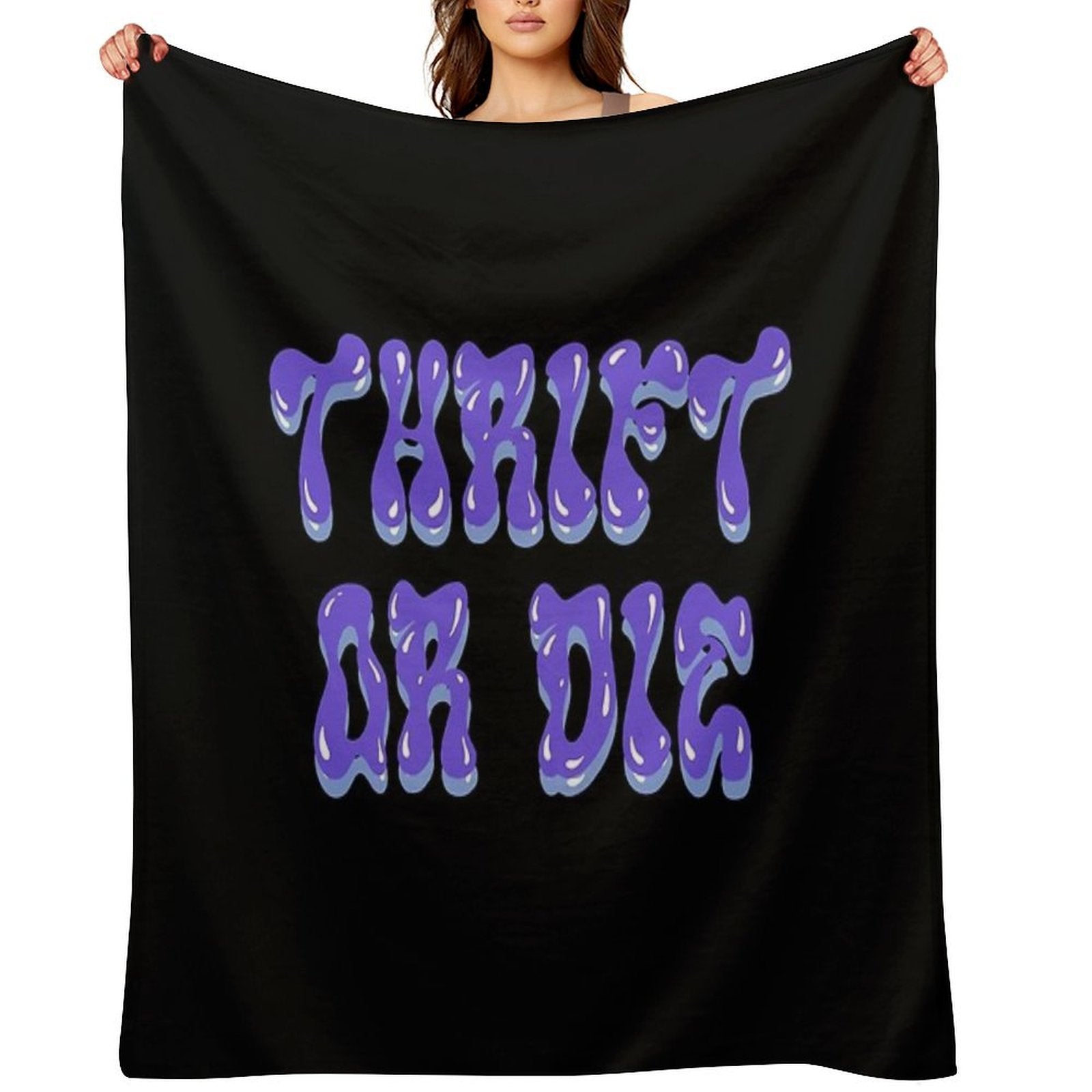 “THRIFT OR DIE” Purple And Blue Throw Blanket