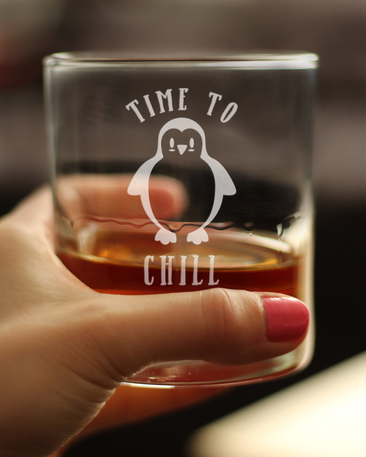 Time to Chill - Funny Cute Penguin Themed Gifts and Decor for Men & Women - Fun Whisky Drinking Tumbler Décor