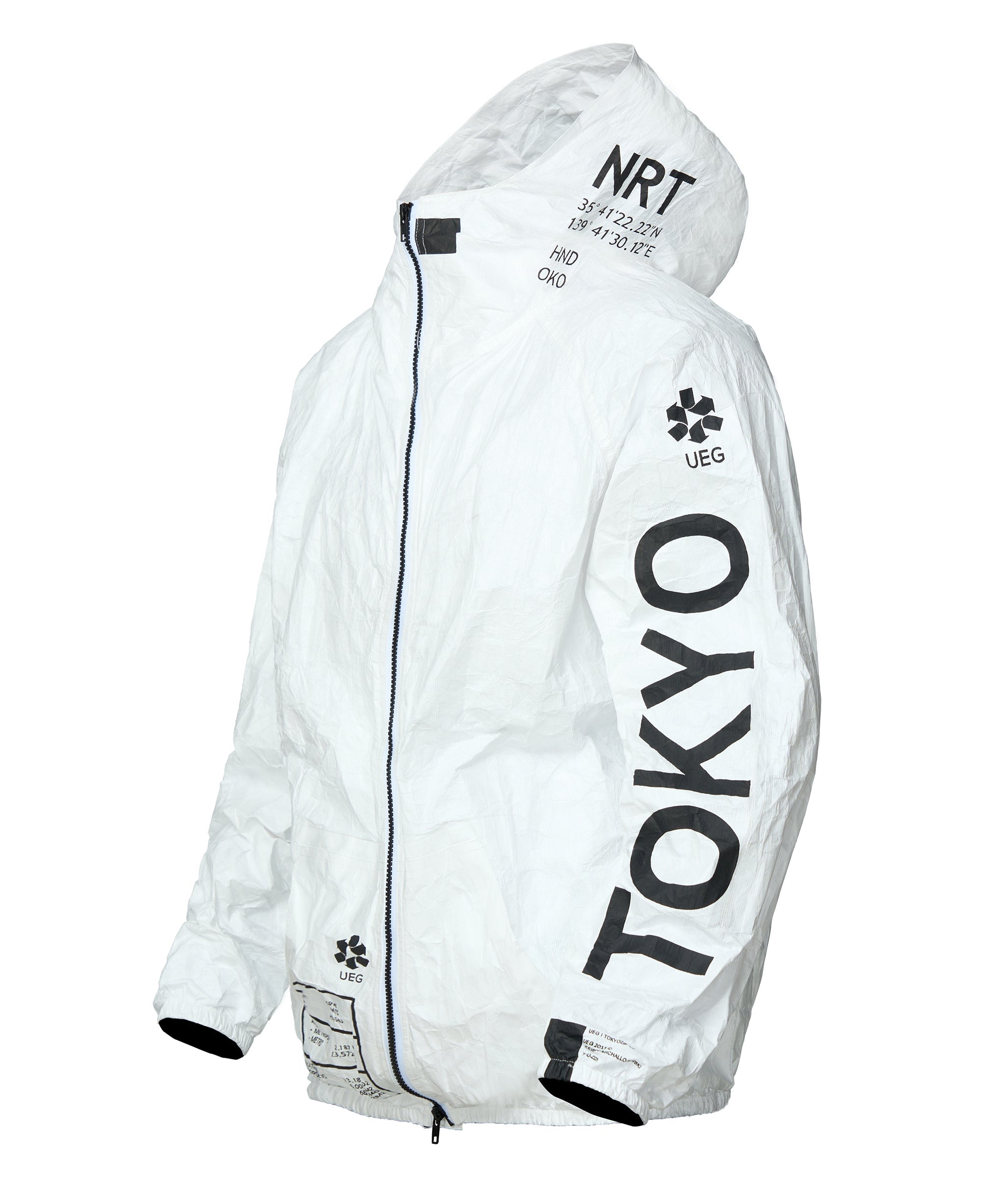 - Data of population, location, and size of Tokyo used as designs on the hood and right bottom corner of the jacket