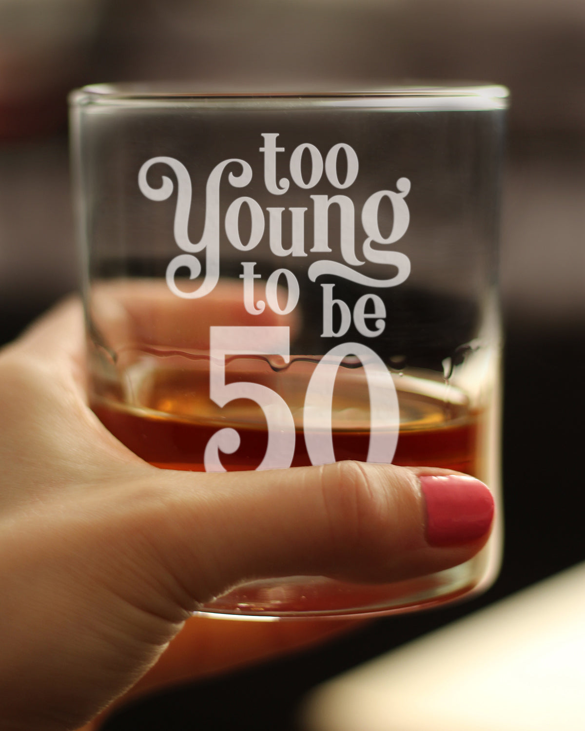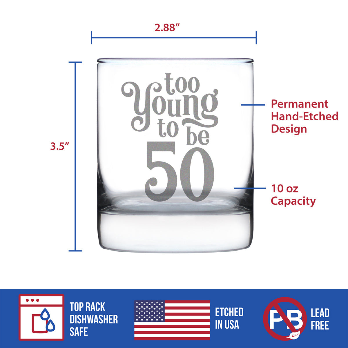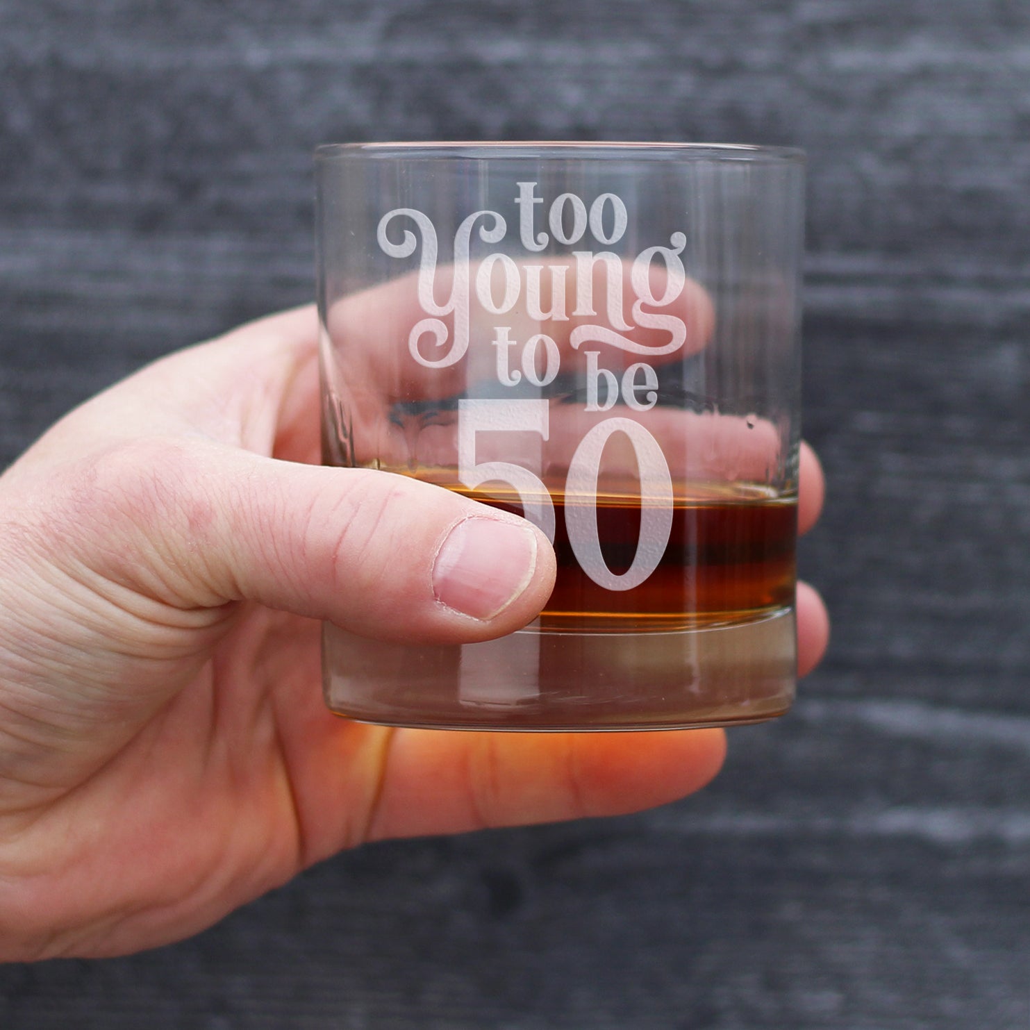 Too Young to be 50 - Funny 50th Birthday Whiskey Rocks Glass Gifts for Men & Women Turning 50 - Whisky Drinking Tumbler