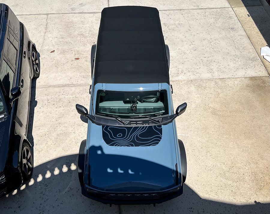 Topographic Map Hood Overlay - 2021+ Bronco ‐ Black (Matte) / 2 Sets with Squeegee