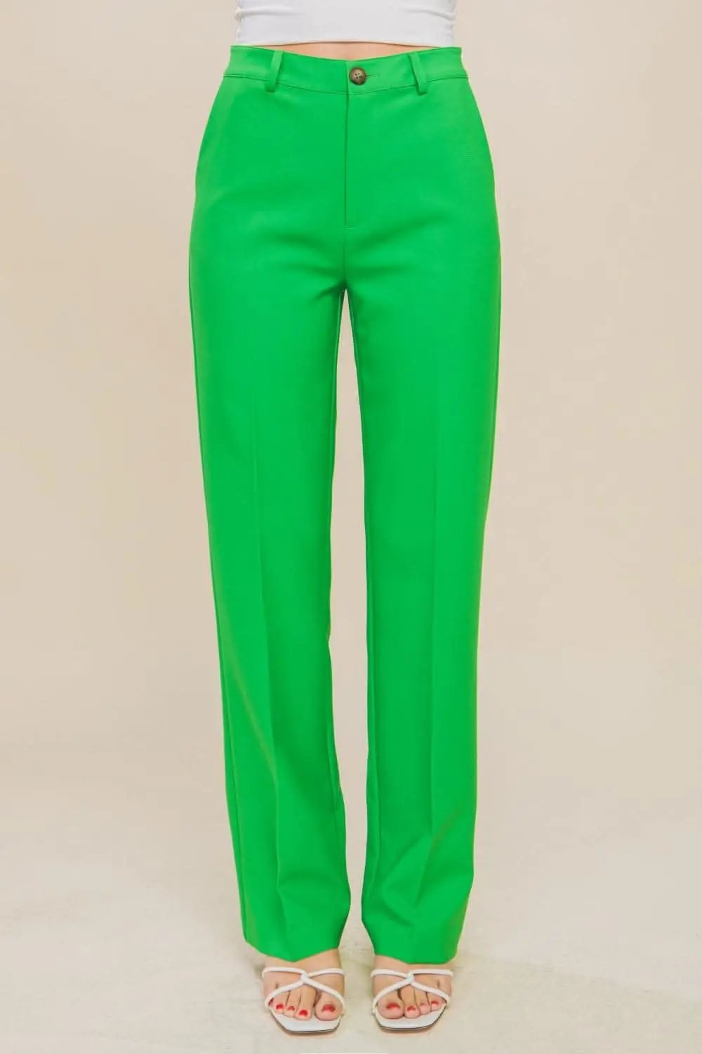 High Waist Pants Women's Casual Straight Leg Trousers USA Ship ‐ APPLE / S