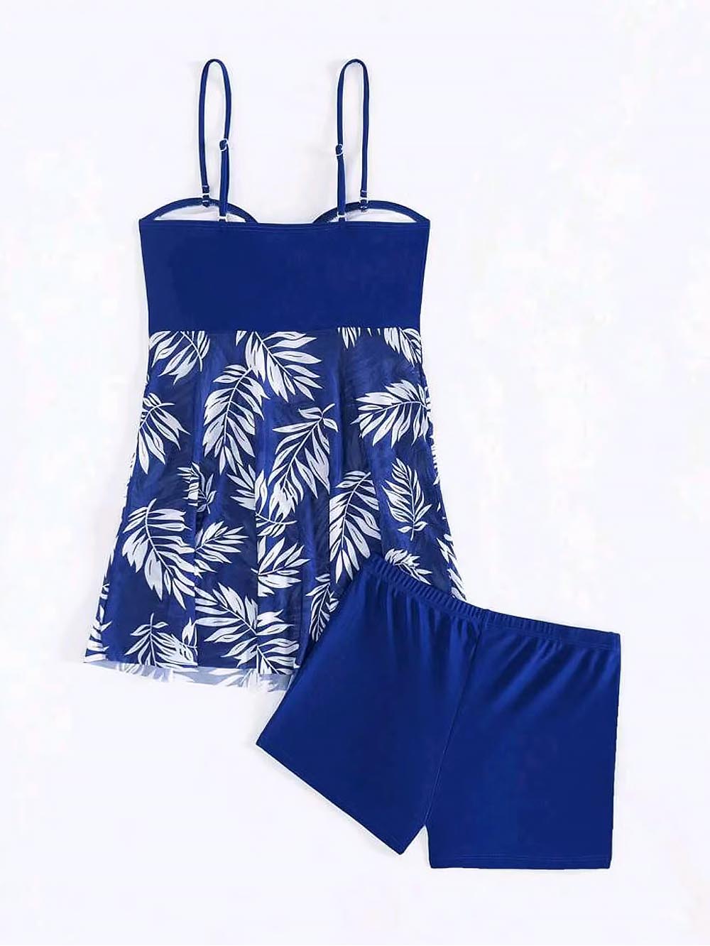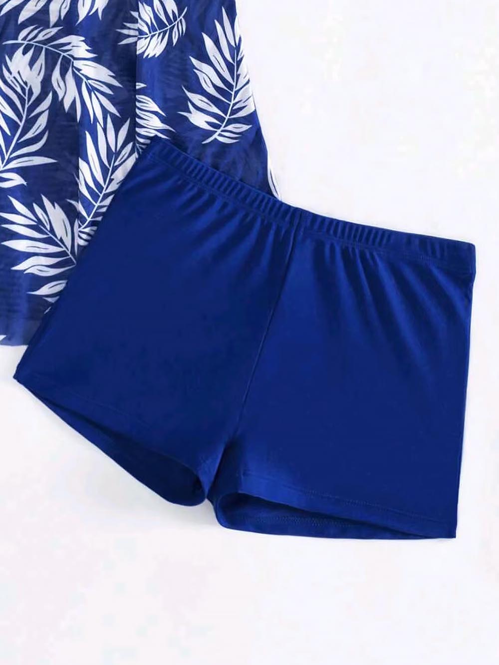 Tropical Print Ruched Bikini Swimsuit | ZAKAPOP ‐ Blue / XL